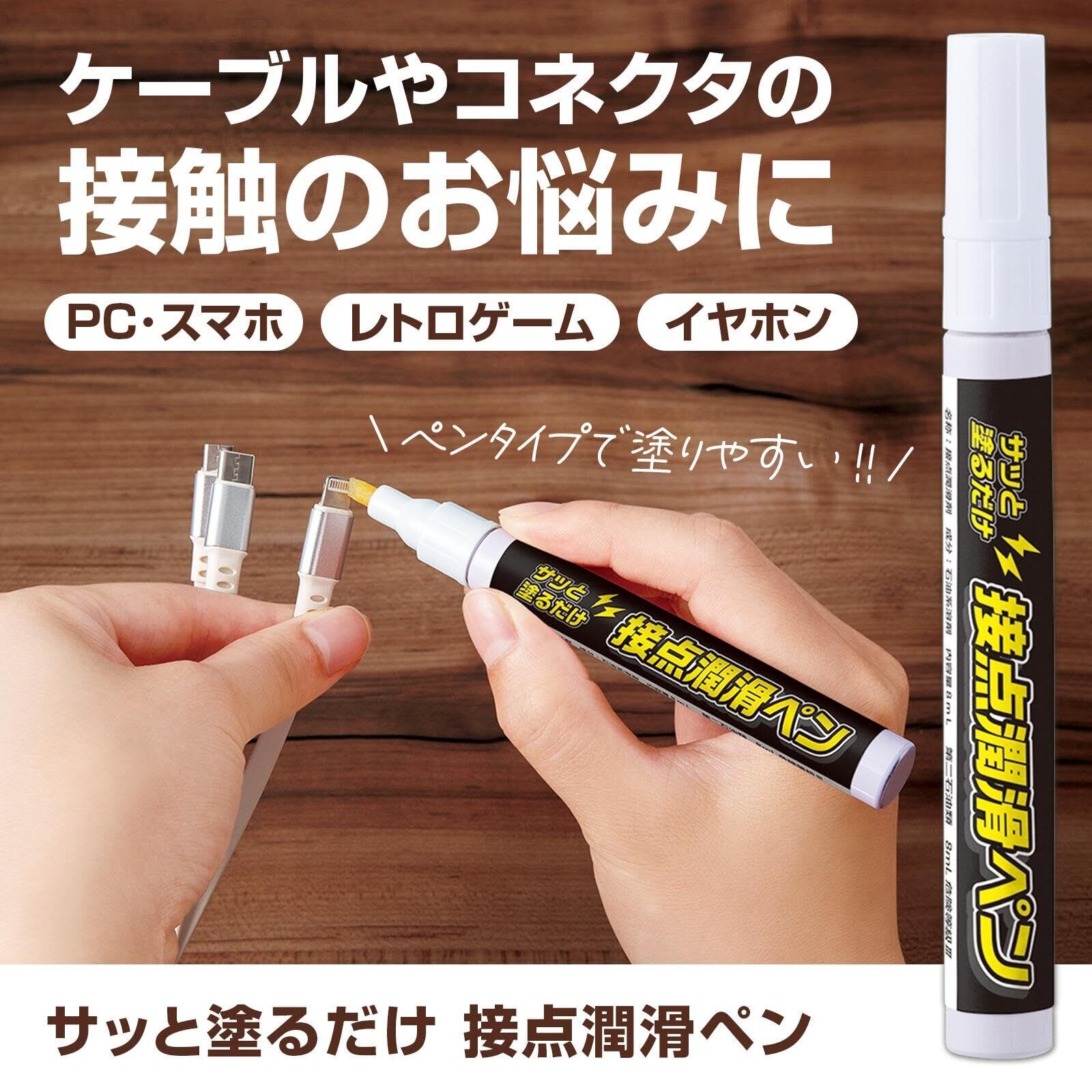 コモライフ サッと塗るだけ 接点潤滑ペン 接点 潤滑剤 接点復活剤 ペン ケーブル コネクタ 接触 不良 補修 接点不良 塗りやすい 簡単 汚れ ほこり サビ PC スマホ レトロゲーム ゲーム機 イヤホン ヘッドホン 【日本製】