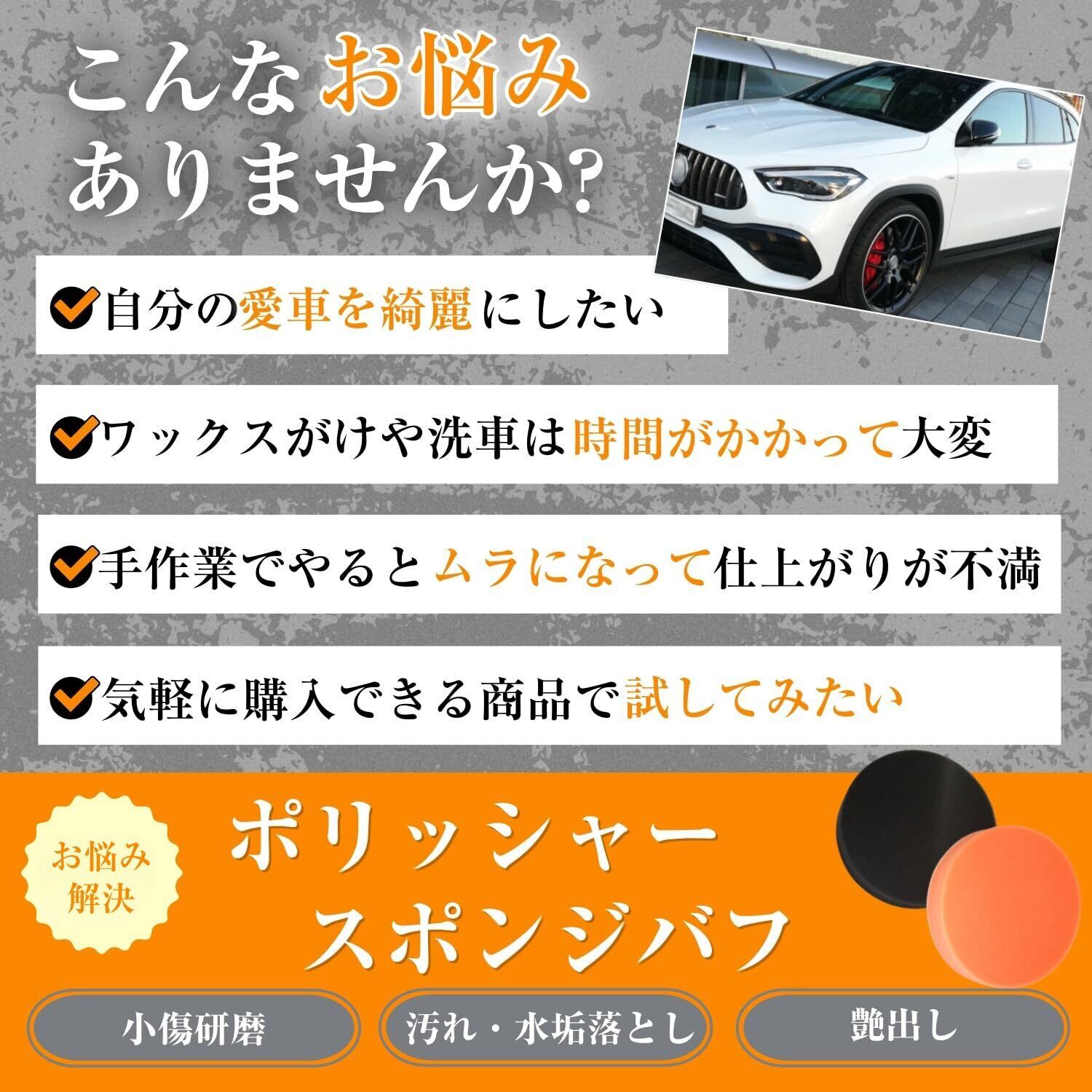 【愛車を傷つけない!】ポリッシャー バフは柔らかいスポンジ素材を採用しており、優れた機能を備えています。弾力性があるため、使用中に車の塗装を傷つける心配はありません。目視では見えにくい微細な汚れも効果的に取り除くことができ、愛車の外観を保つための仕上げやワックスがけ、研磨に最適です。自分で車のメンテナンスを行う場合、このセットは非常に優れた選択肢となります。