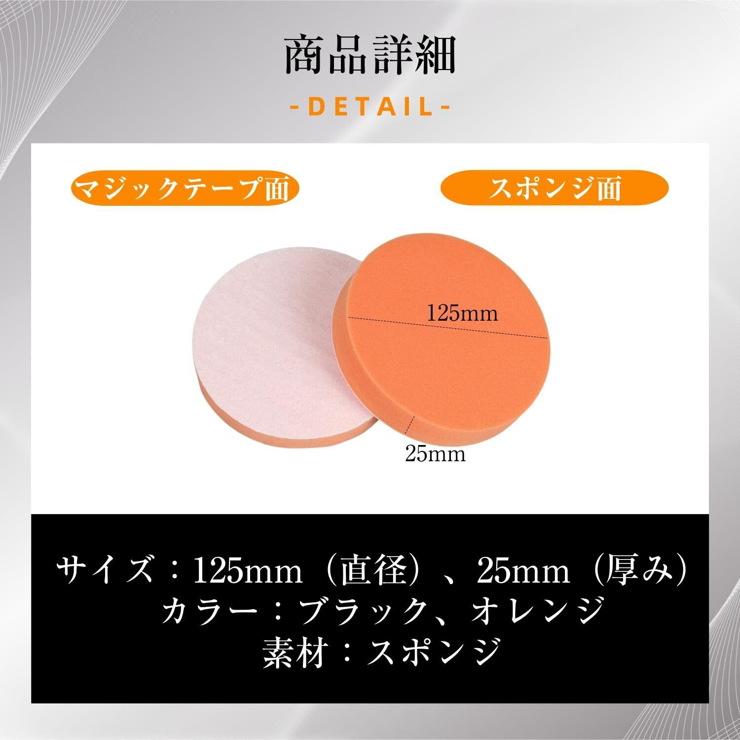 ポリッシャー バフ 125mm スポンジバフ 【12個入り】 研磨パッド 研磨スポンジ 柔らかい マジックテープ 電動ポリッシャー用 耐久性 繰り返し使える 平型スポンジ 洗車セット 自動車ポリッシャー車 洗車用 ワックス掛け機用