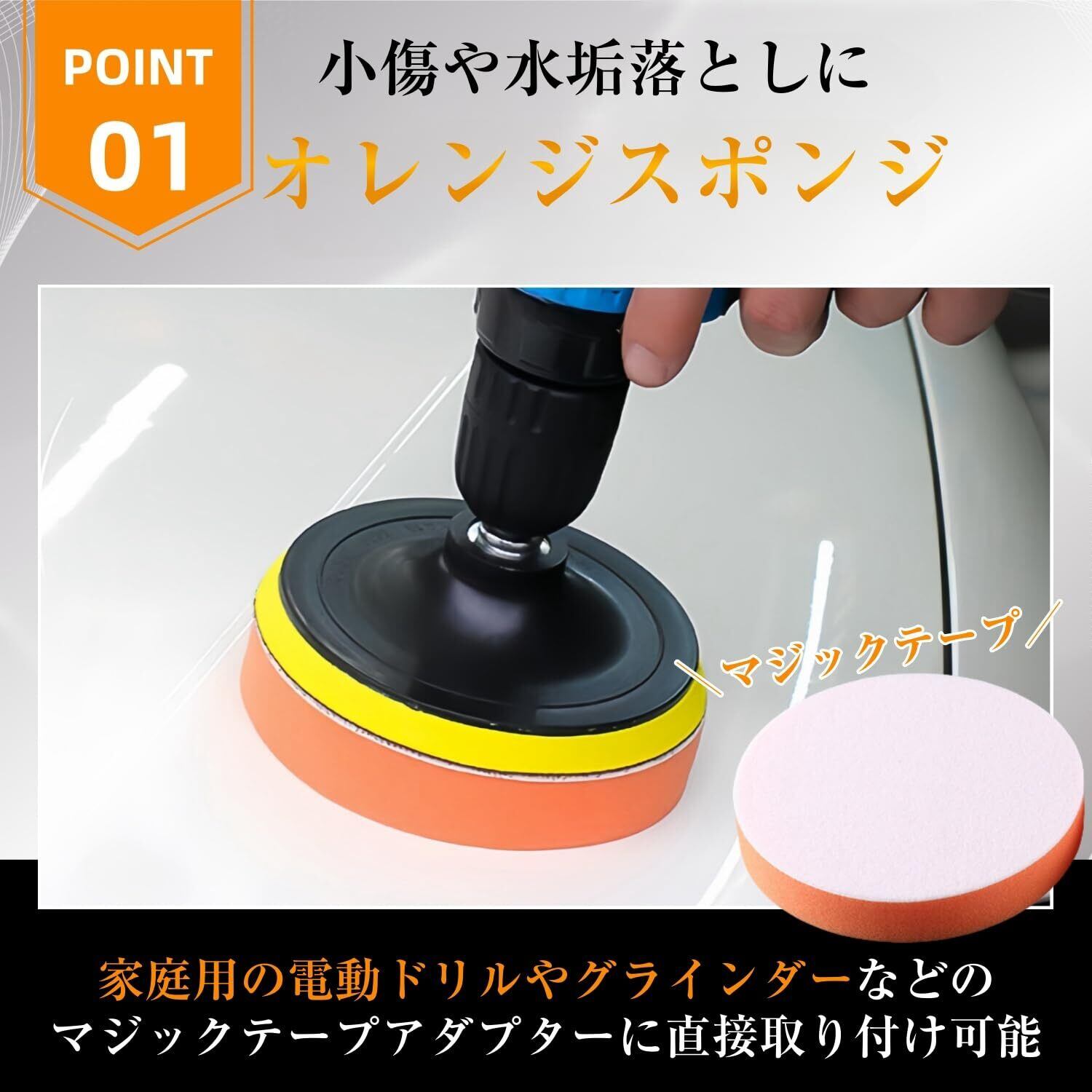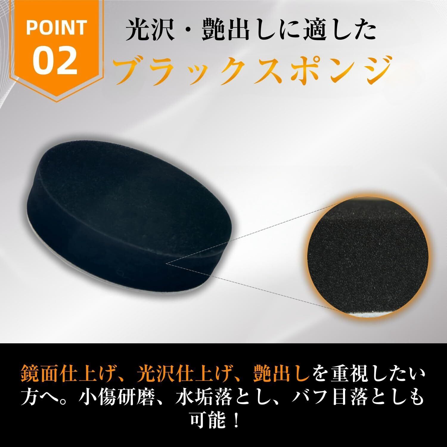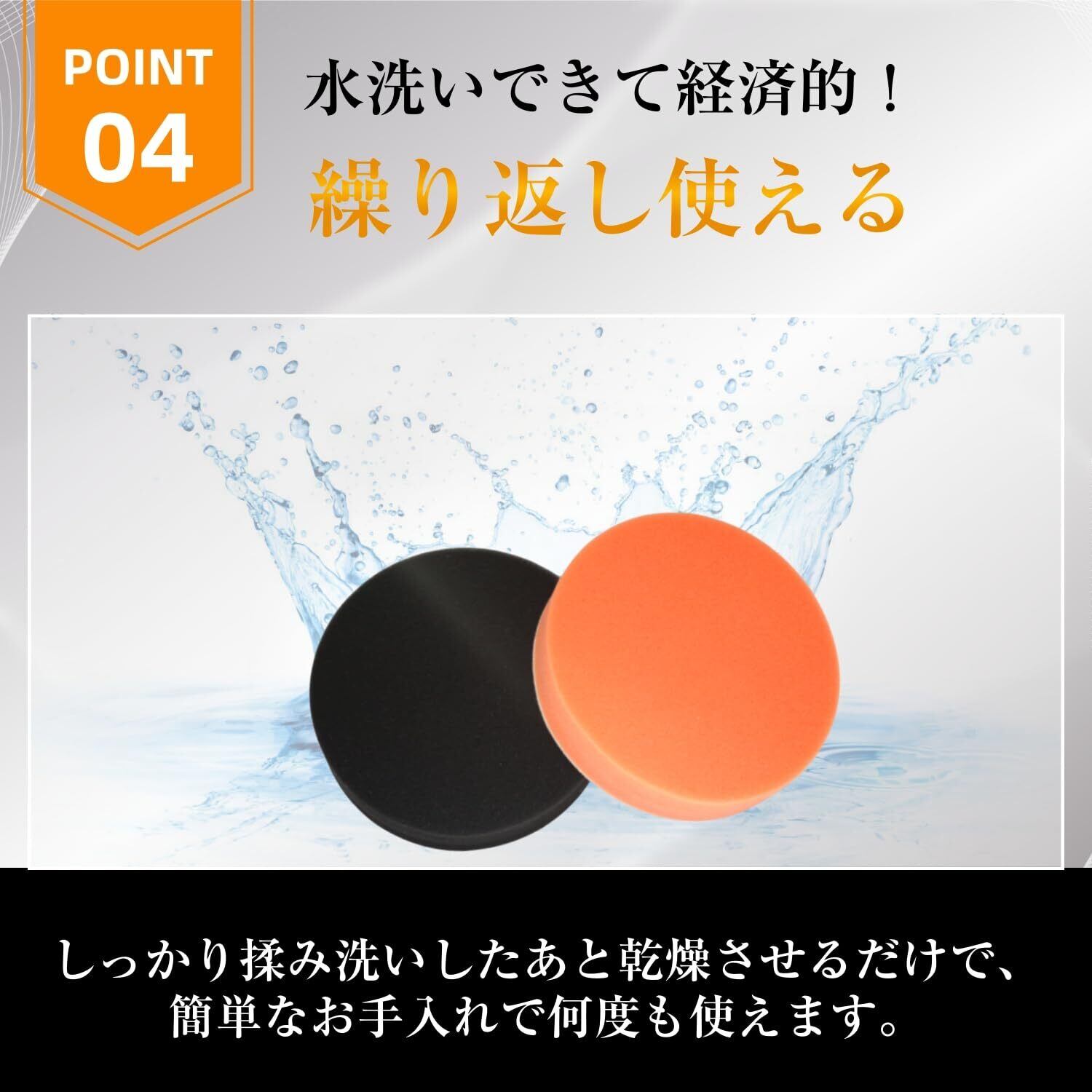 【高品質のポリッシャー バフ】スポンジの色によって硬度が異なり、オレンジは比較的硬め、ブラックは柔らかめです。ブラックのスポンジは光沢を加え、磨いて明るさを引き出すのに適しています。オレンジ色のスポンジは、小さな傷や水垢を取り除くのに適しています。
