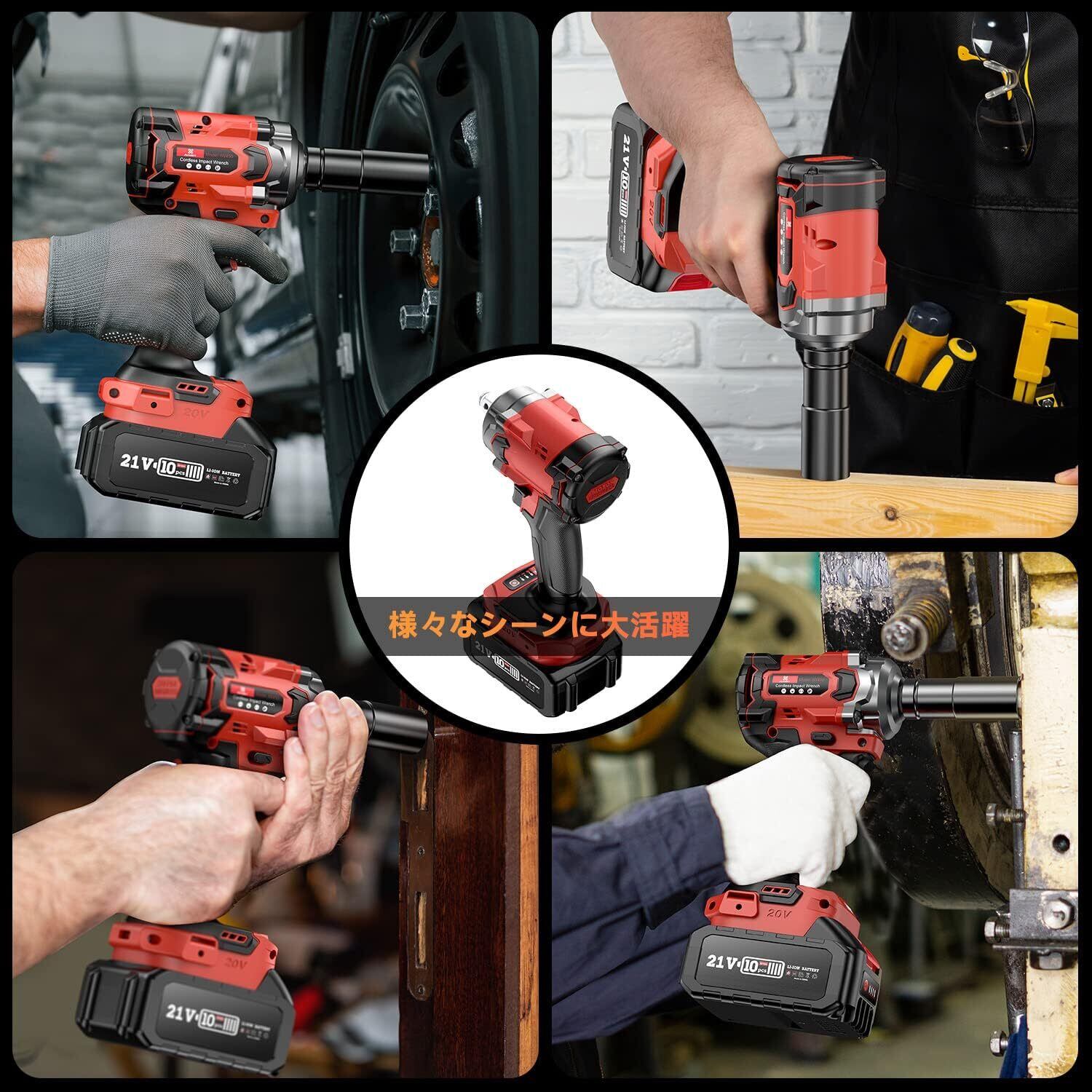 【コンパクトと軽量と安心のアフターサービス】コンパクトでコードレスの充電式多機能インパクトレンチは、フル充電後は場所を選ばず、どこでも持ち運べて便利に作業できます。女性でも簡単に操作・使用できて、長時間の作業でも疲れません。もし製品に問題が発生した場合は、箱が潰れていたり、付属品が破損していても、商品交換に対応いたします。製品に問題がある場合は、お気軽にご連絡ください。お客様のご要望にお応えし、2時間以内にご返信いたします。お問い合わせ方法:アカウントサービス内の「注文履歴」→「販売者」→「質問」からお気軽にお問い合わせください。