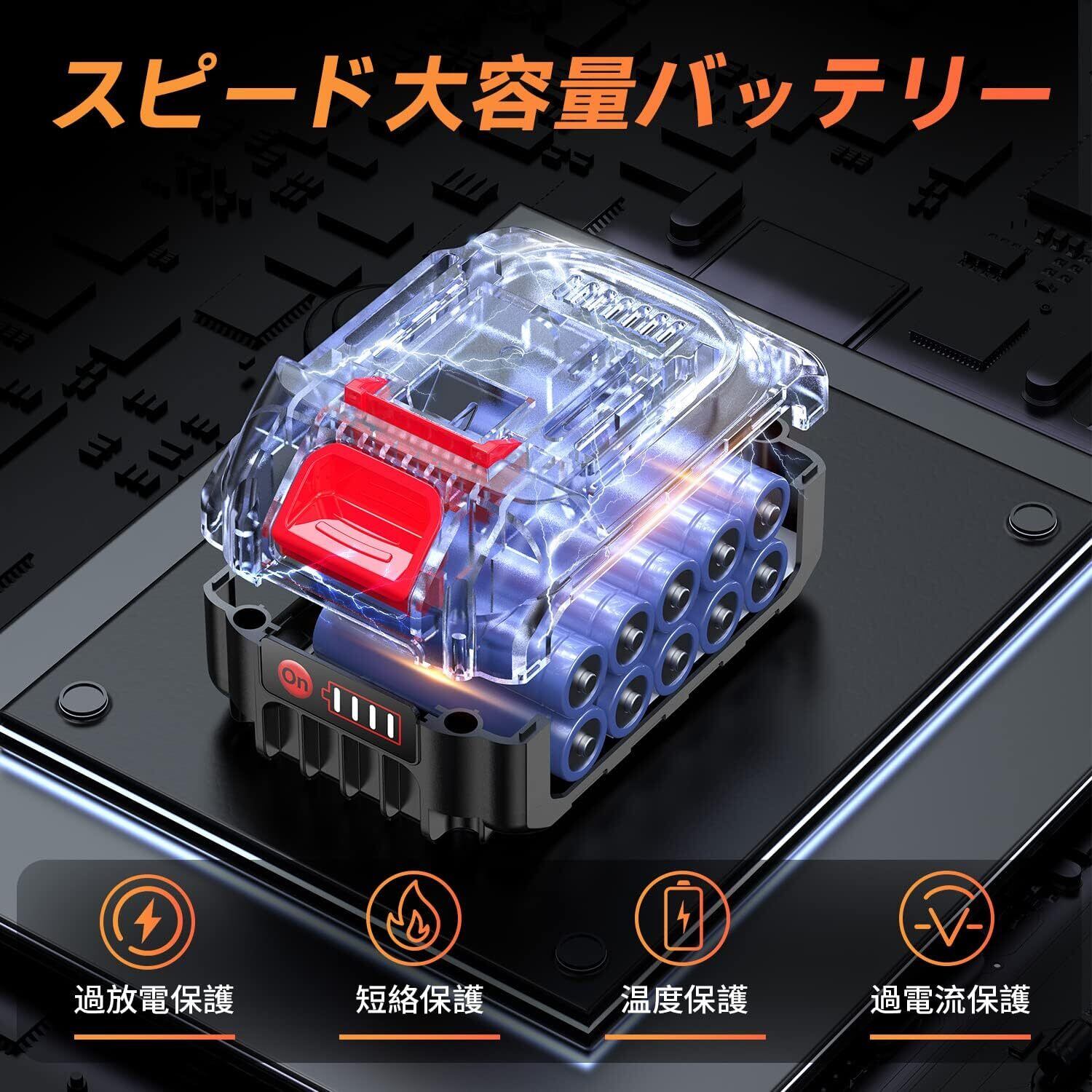 【大容量の4000mAhバッテリー】高性能で大容量の4000mAhリチウムイオンバッテリーが付属しています。また、残量確認機能も付いているので、インジケータライトで電量の使用状況がとても分かりやすいです。マキタバッテリーのBL1820b、BL1830b、BL1840b、BL1850b、BL1860bに対応できます。