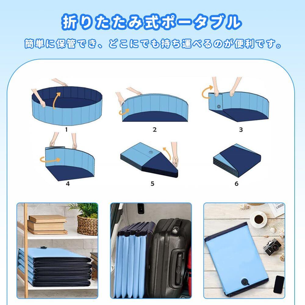 【様々な用途&サービス】このプールは、ペットも使えますし、子供も使えます。折りたたみ式ので、コンパクトに収納できて、簡単に持ち運べるので、屋内、お庭、ビーチ、屋外などいつでもどこでも簡単に使用できます。水遊びプール、玩具収納用、砂遊び用など、アクアリューム、様々な場合で活躍しています。