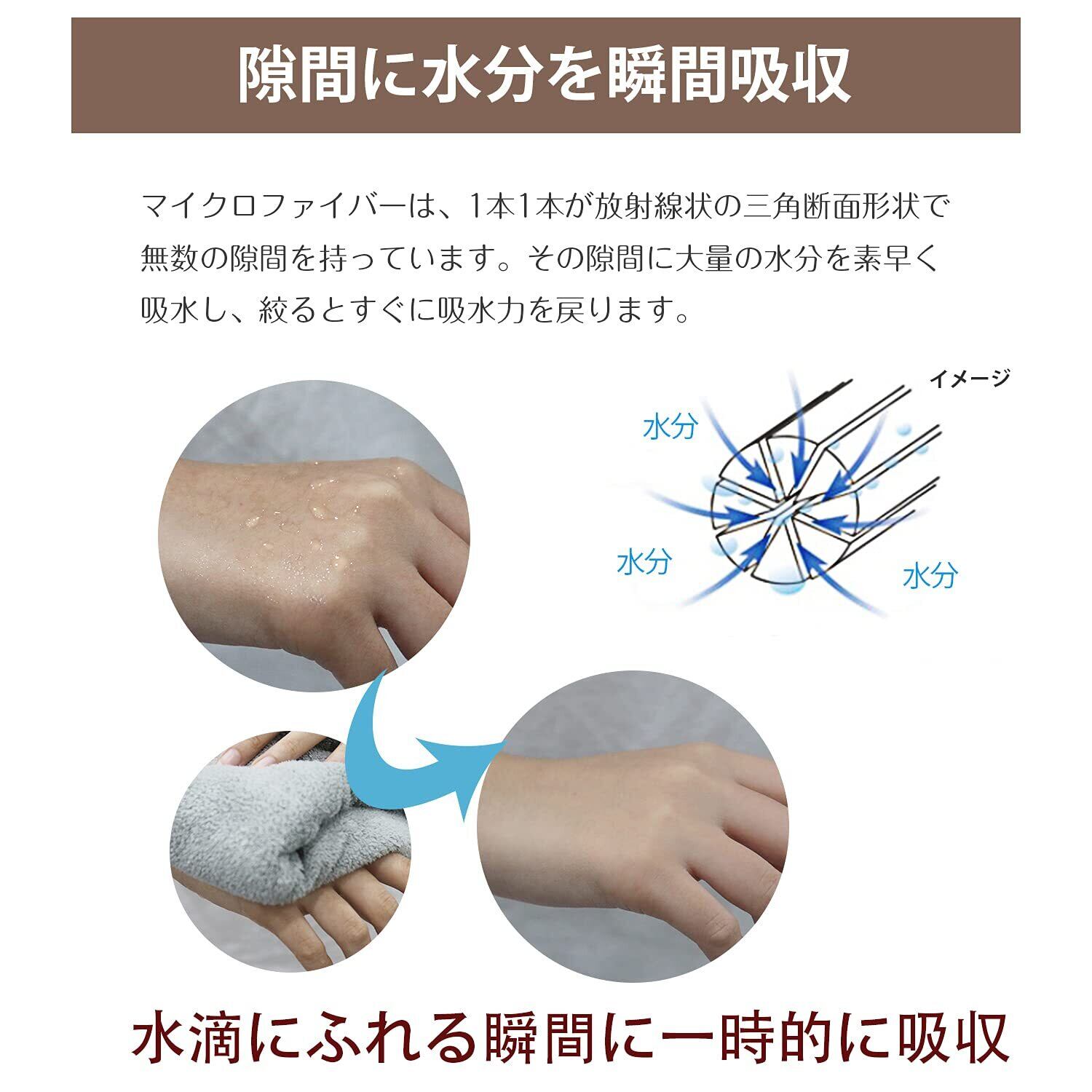 【抜群な吸水力】マイクロファイバーで作られていますので、吸水力は綿より3倍以上優れるところは誇りになる性能を持つ。繊維に多くの隙間があり、直径8マイクロメートル以下、髪の毛の100分の1以下という細さで素早く水を吸収します。なめらかな手触りと吸水性能と速乾性能の速さがかがやくポイント。身体を包み込むように羽織るだけでしっかり吸水します。