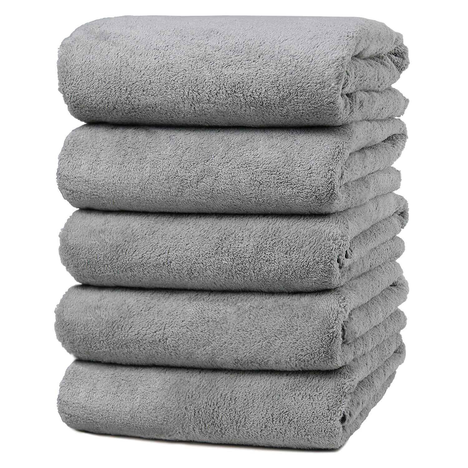 Joyful バスタオル マイクロファイバー ホテル仕様 大判 60*120cm 5枚セット 高速吸水 速乾 耐久性 抗菌防臭 ふわふわ 柔らかい 肌触り (グレー)