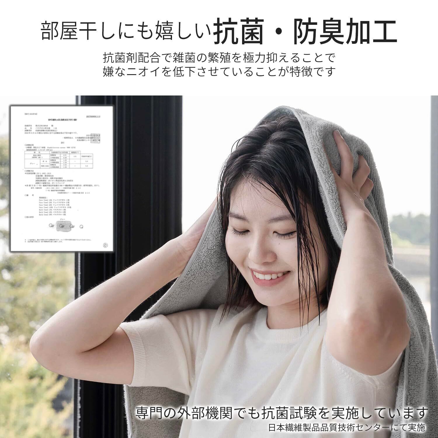 AIFY バスタオル 2枚セット 大判 速乾 ふわふわ 柔らか 綿 毛落ちしにくい 耐久性 厚手 軽量 抗菌 防臭 瞬間吸水 ホテル仕様 無地 髪に優しい 赤ちゃん エステ サロン 一人暮らし 新生活セット ギフト 60×120cm ライトグレー
