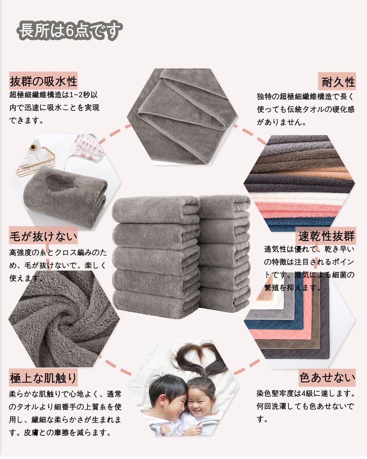 【フェイスタオル 10枚セット】サイズ:約35×75cm、重量:約80g(1枚あたり)セット内容: グレーブラウン 10枚。出張、旅行、入浴、ご家族皆さんが満足できます、様々な場合で活躍。