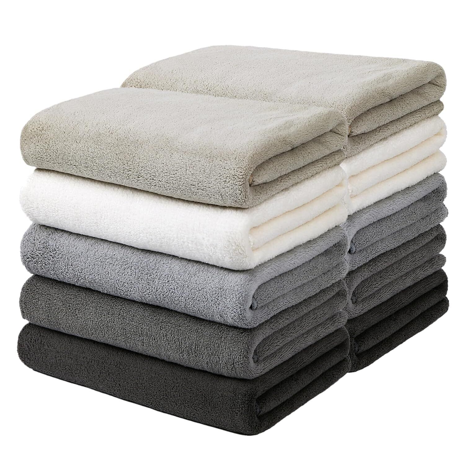 Oseamaid フェイスタオル 5色10 枚セット マイクロファイバー タオル 吸水速乾抗菌防臭 洗濯袋を届けます(白い グレー ライトグレー ミディアムグレー ダークグレー)