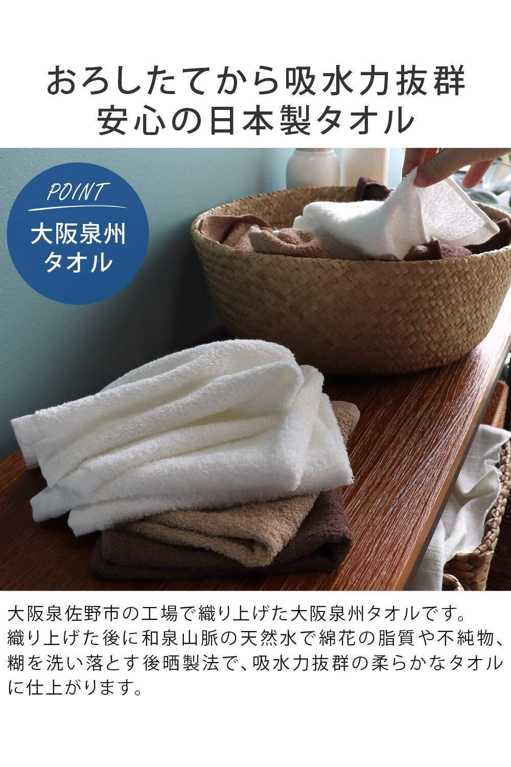 【日本製 泉州タオル】大阪泉佐野工場で織り、和泉山脈の天然水で洗い上げた泉州タオルです。タオルを織り上げてから水洗いや染色を行う泉州タオル独自の後晒製法により、使い始めから柔らかな肌触りと吸水性の良さを感じていただけます。外国製タオルが主流の昨今、身近なものだからこそこだわりたい日本製タオルです。