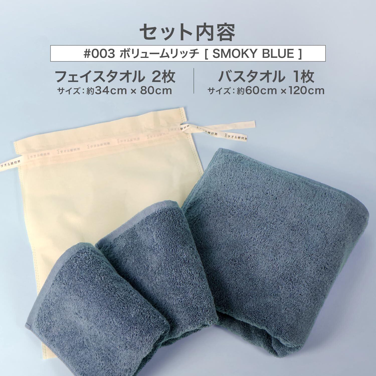 タオル研究所 [ボリュームリッチ] #003 バスタオル1P+フェイスタオル2P スモーキーブルー ギフトセット 3枚組 ホテル仕様 厚手 ふかふか ボリューム 高速吸水 耐久性 綿100% 480GSM JapanTechnology