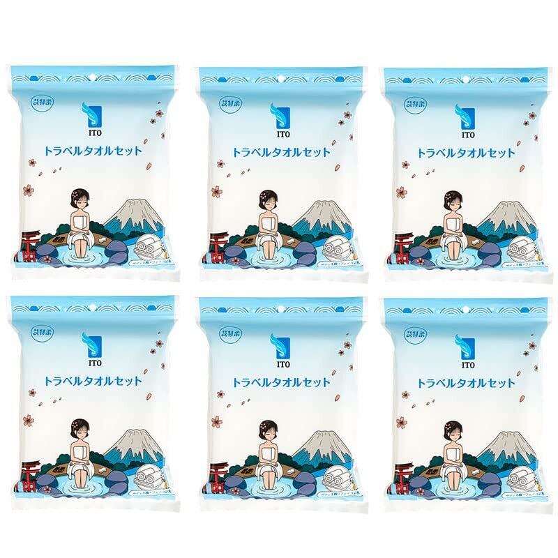 【6個セット】ITOトラベルタオルセット 旅行 出張 温泉 水遊び キャンプ(バスタオル1枚+フェイスタオル2枚)