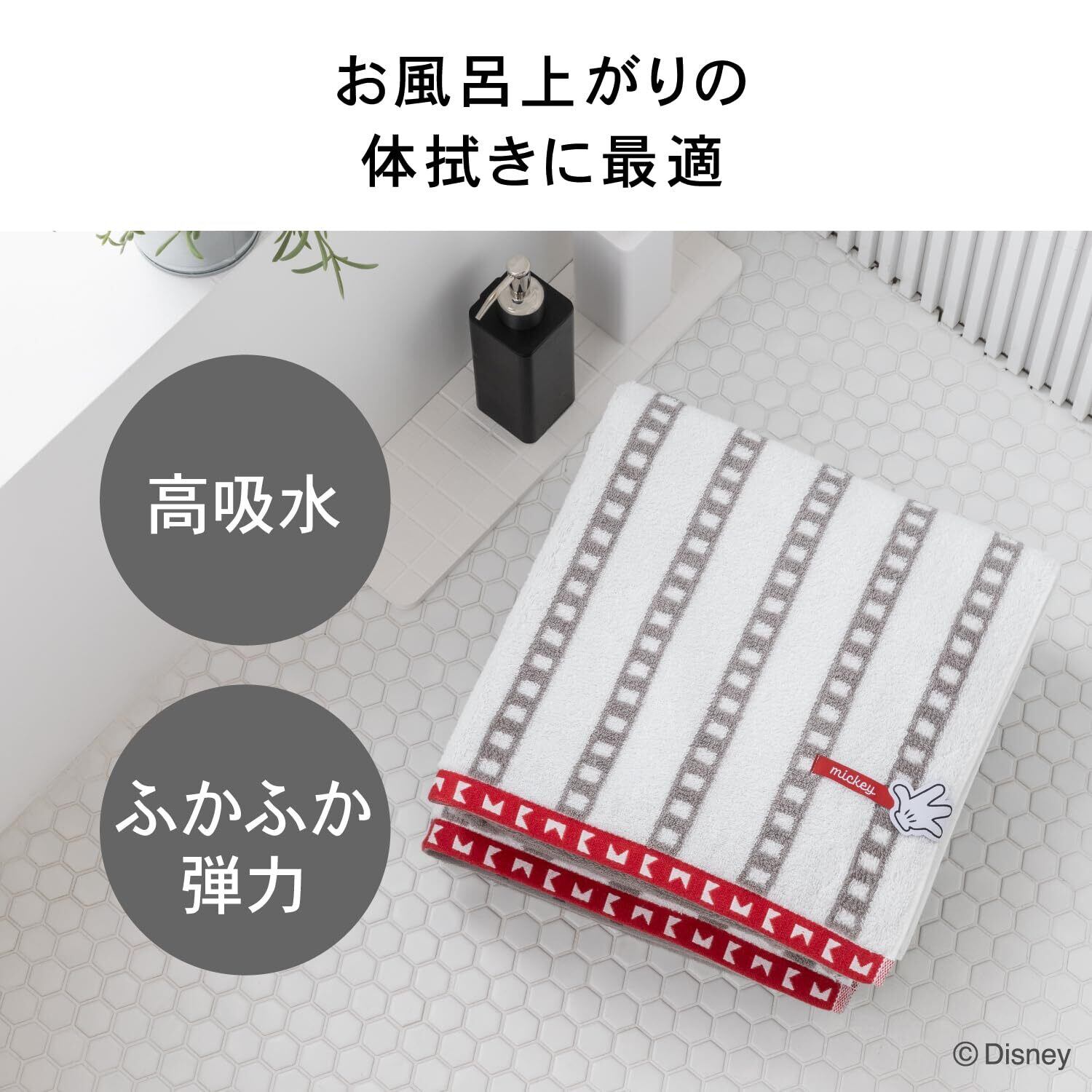【高い吸水性】お風呂上がりの水分もしっかり吸収。水分拡散性が高く肌に不快感が残らない。