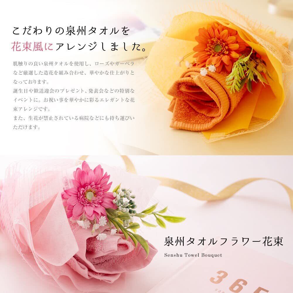 ユメギフト 花束 タオル 泉州タオル フラワー ブーケ ハンドタオル (オレンジ, S)