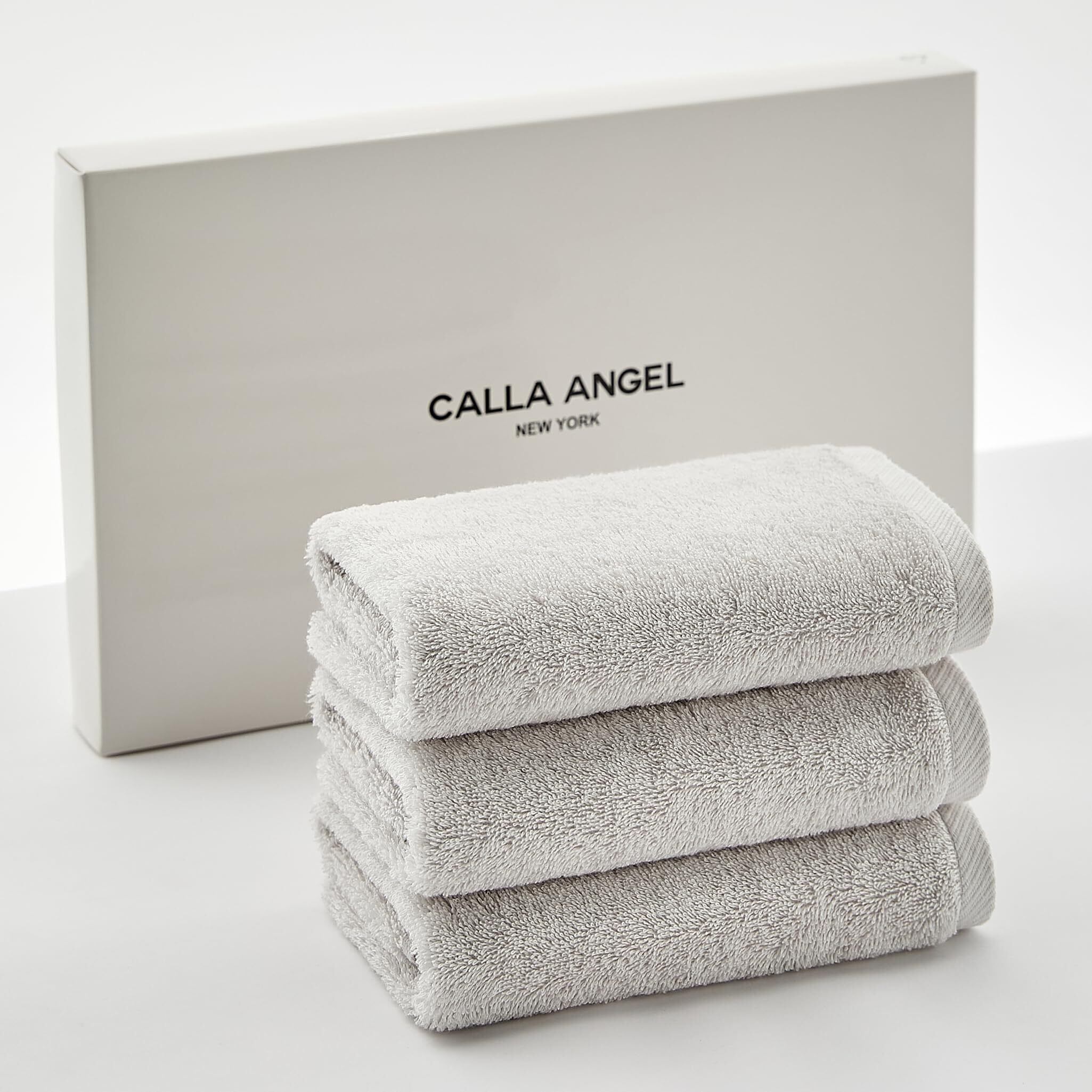 Calla Angel New York【エジプト超長綿GIZA86 100%】高級フェイスタオル 3枚組 高吸水 柔らかい 甘撚り 厚手 無地 上質コットン OEKO-TEX認証 ホテル仕様 ギフト 白箱入り 〔約35×80cm〕シルバー