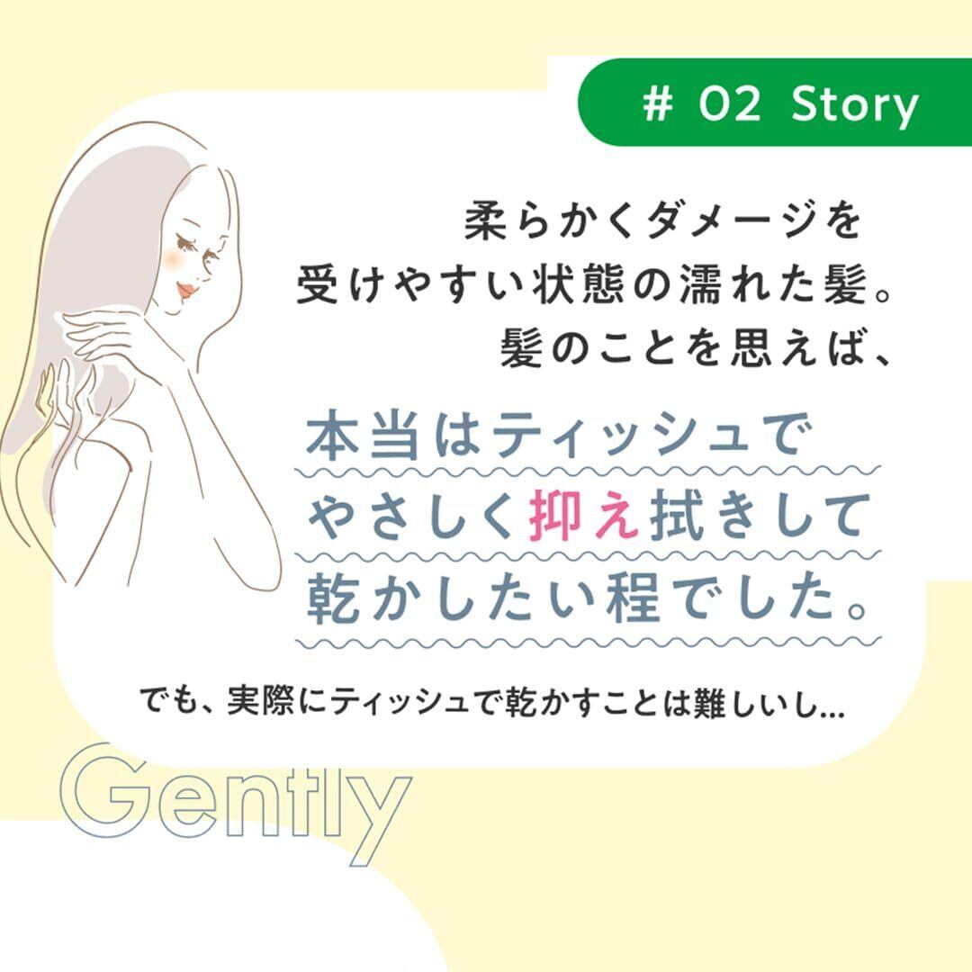 吸水性に優れた素材で水分を瞬時に拭き取り、ドライヤーをかける時間を大幅に短縮します。