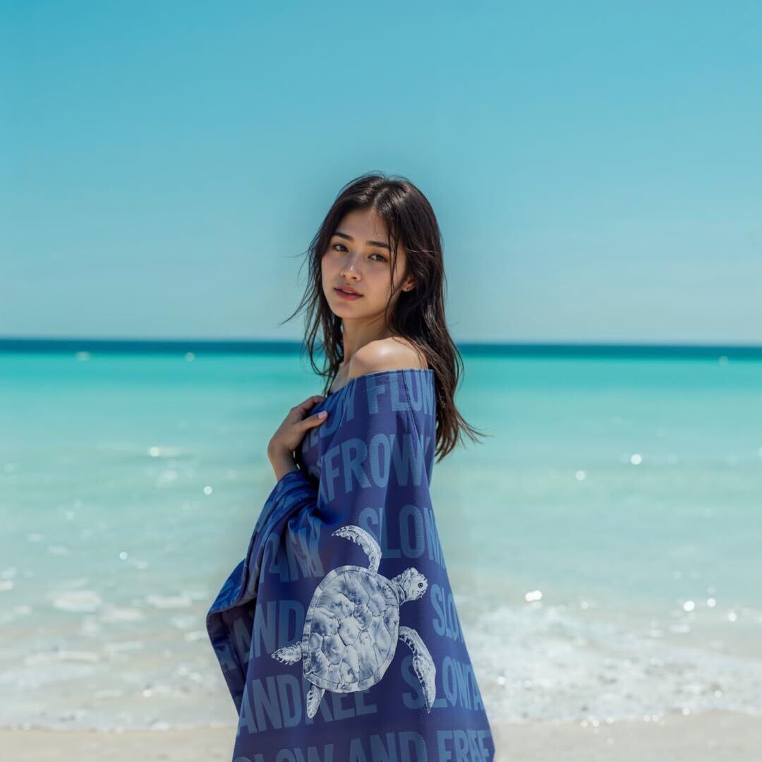 アウトドアに強い素材 NOOSANAのビーチタオルは耐久性の高い素材で作られており、海やアウトドアでも安心して使えます。濡れてもすぐ乾くので、快適にお使いいただけます。