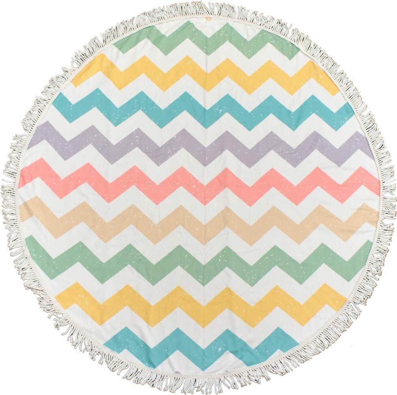 のれん工房 ラウンドタオル ブランケット ひざ掛け ビーチタオル おしゃれ マルチタオル テーブルクロス 大判 円形 タオル シェブロンストライプ 11728