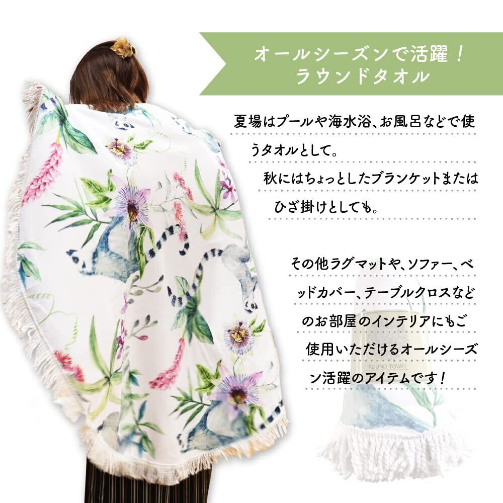 ビーチタオルやビーチマットとして、またインテリアとしてもご利用いただける、かわいいラウンドタオルです。