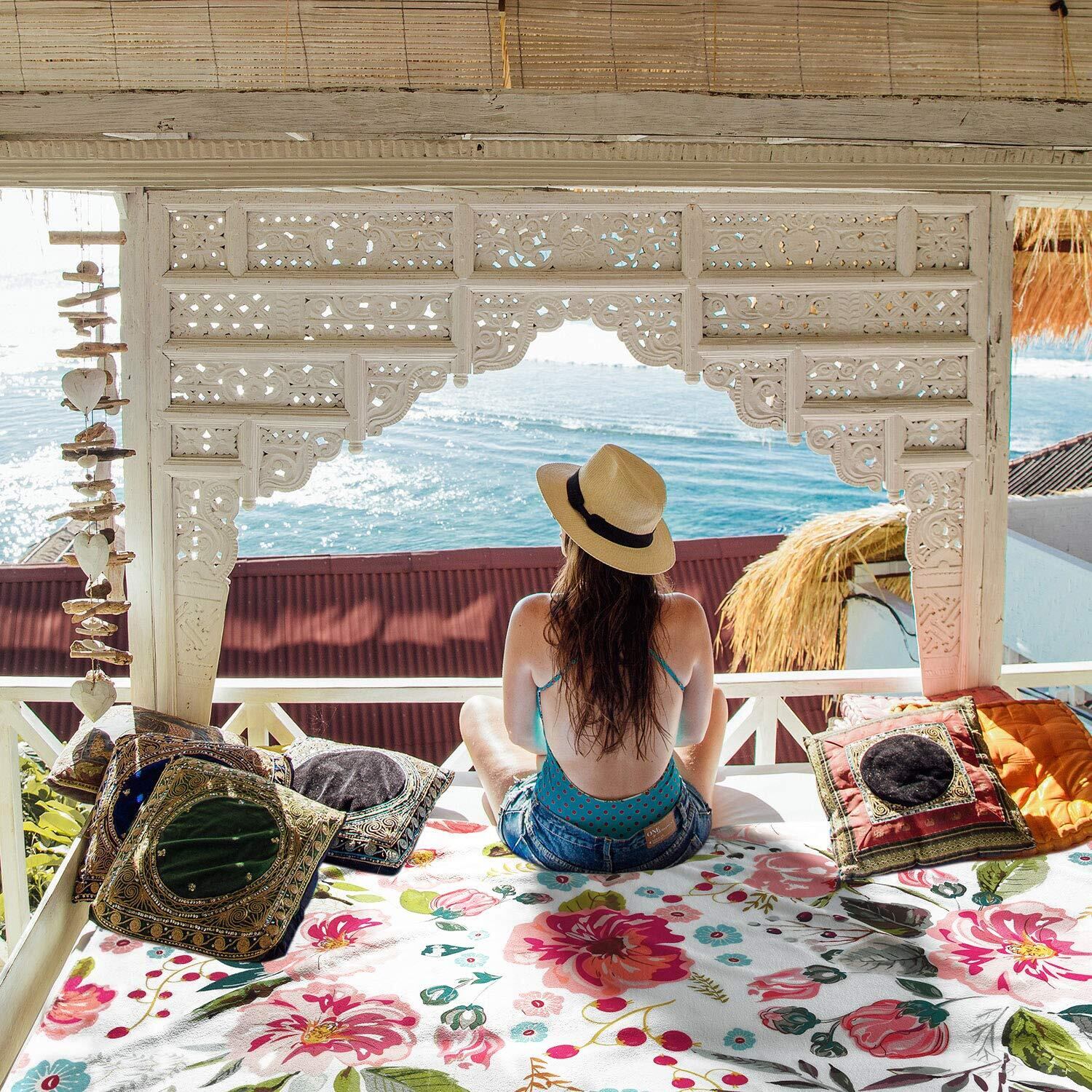 高品質の材質: カラフルな花ビーチタオルは綿とポリエステルで作られ、いつもと使ってるバスタオルの素材と違って,乾きがはやくて耐久性が良くて柔らかくて肌さわりサラサラな快適仕様です。大判ビーチタオルなので2人寝そべっても十分なスペースがあり、ご家族や友達と一緒に休みをのんびりします。