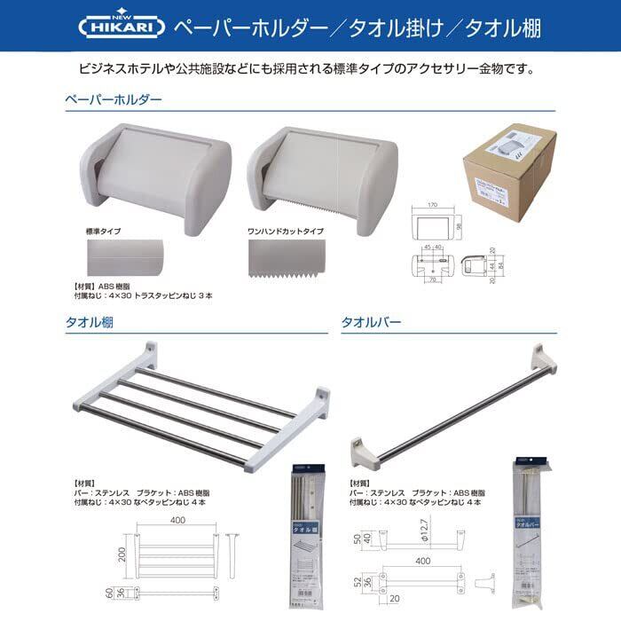 清水(Shimizu)NEW HIKARI (ニューヒカリ) SH-AC30TB タオルバー ホワイト 400mm