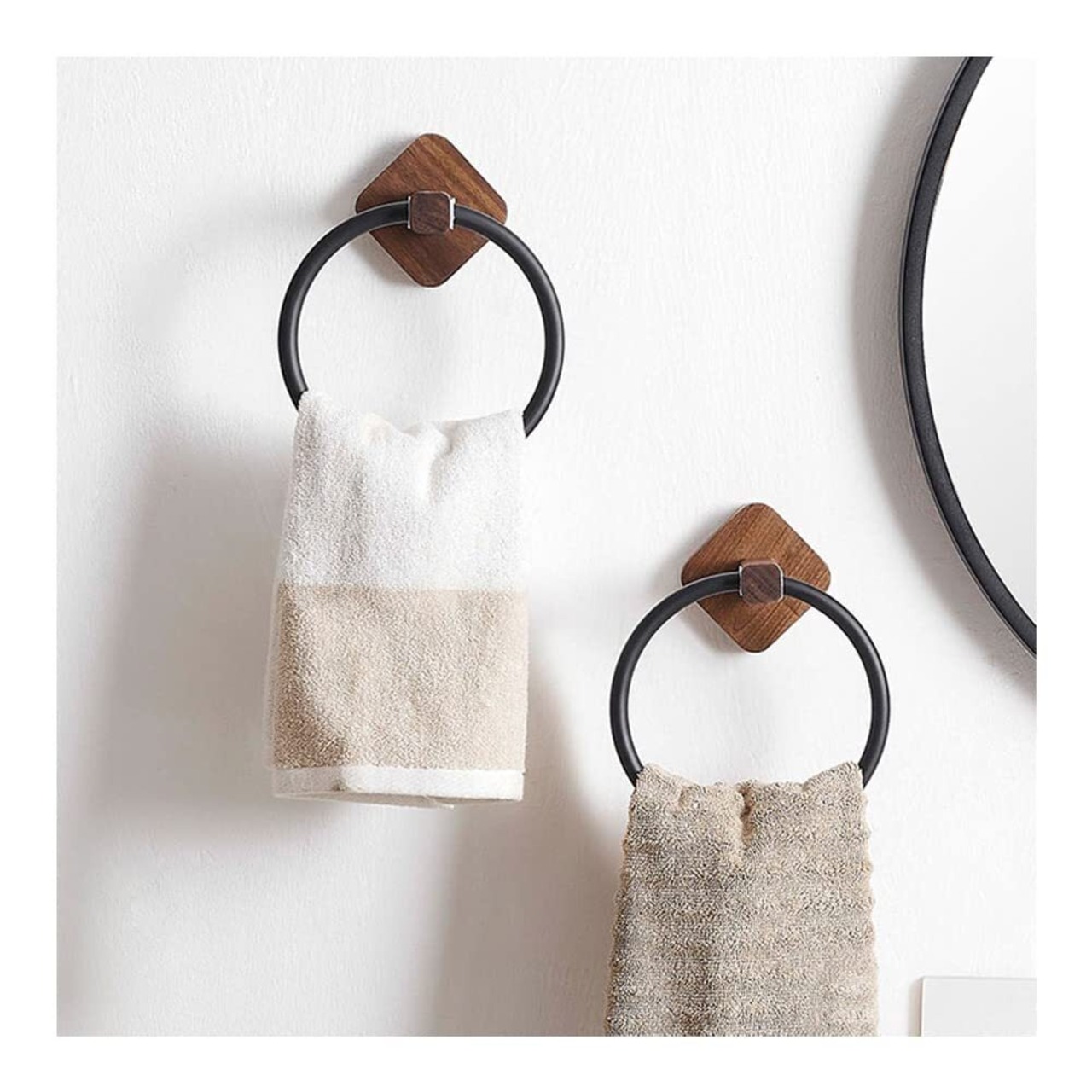 【材質】美しい木目の黒クルミ材とファション感溢れるアルミニウムの組み合わせがとってもおしゃれなタオルリングです。防カビ、防水、防錆、耐摩耗性があり、非常に丈夫で長持ちします。