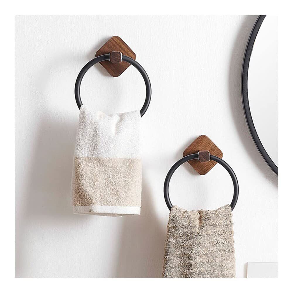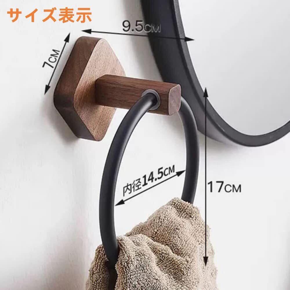 lanzoub タオルリング タオル掛け 洗面所 強力粘着 タオルハンガー 木製 アンティーク タオルホルダー バスタオル掛け 壁掛け おしゃれ トイレ キッチン バスルーム アクセサリー お風呂 浴室 洗面所(胡桃木ブラック)