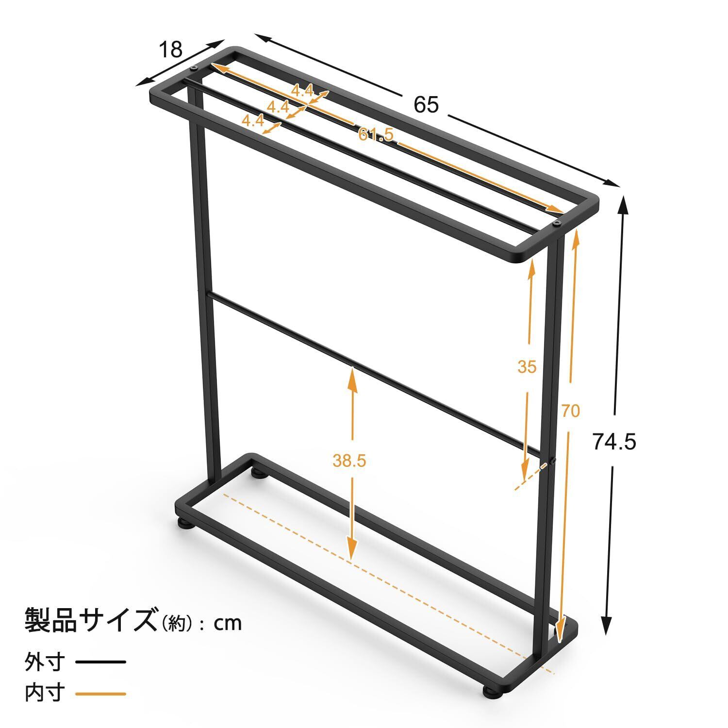 UTIMIU バスタオルハンガー タオルハンガー バスタオルスタンド 約W65×D18×H74.5cm タオル掛け 大判サイズ対応 掛けやすい 室内干し 物干し アジャスター付き バスタオルバー スリム 浴室 洗面所 トイレ 風呂場 隙間収納 ラック (ブラック)