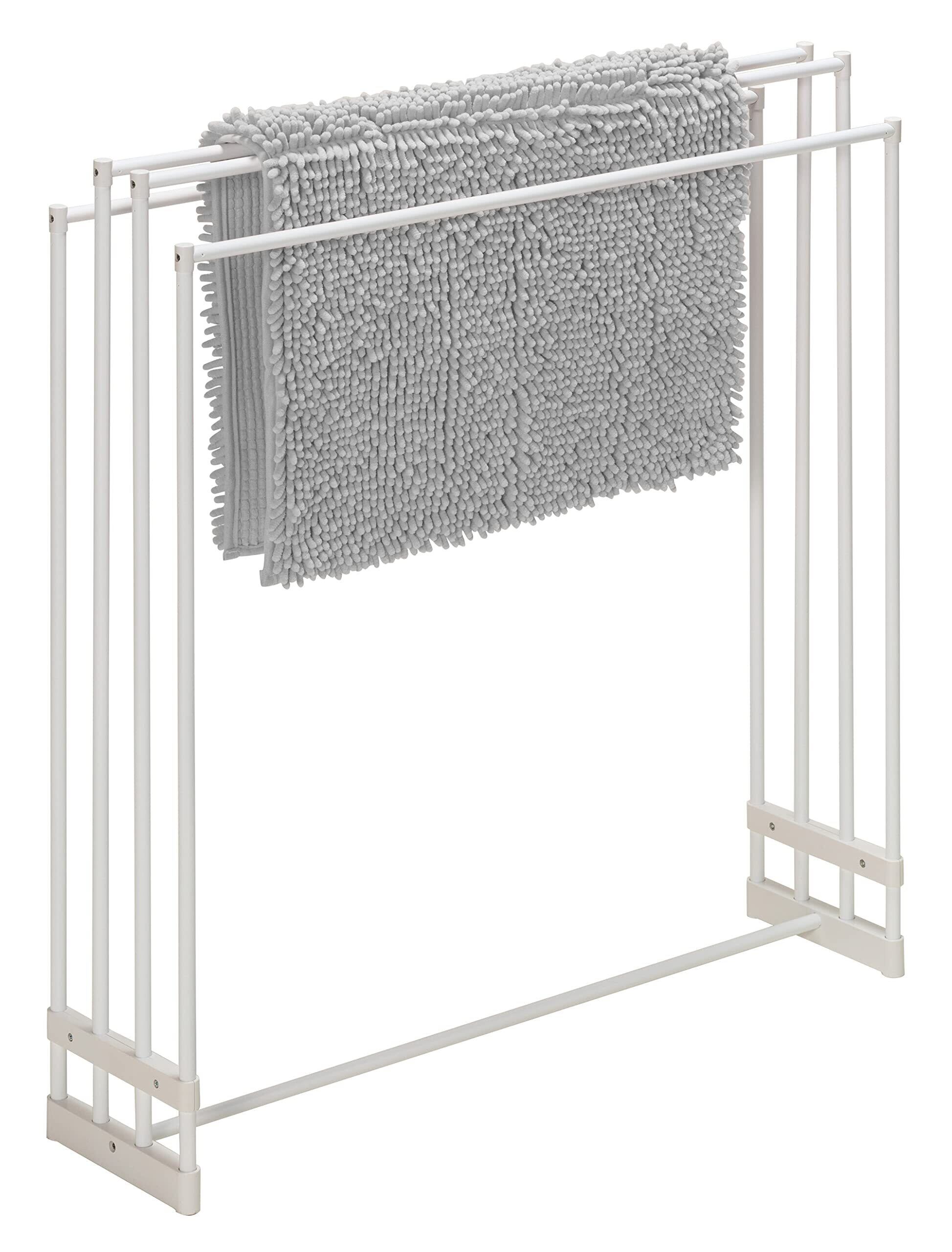 インテリアで主張しない清潔感のあるホワイトカラ-。ジョイントはインテリア性と強度を両立したシンプルデザイン。耐荷重は約4㎏迄。バスマットなども干すことができます。(材質)パイプ:樹脂コ-ティングスチ-ルパイプ、成型部品:ABS樹脂、ネジ類:スチール(メッキ)