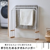 アイリスオーヤマ(IRIS OHYAMA) 横から干せるタオルスタンド 使わない時は折りたためるから収納に困らない設計 天然木仕様でインテリアに馴染みやすいデザイン ブラック