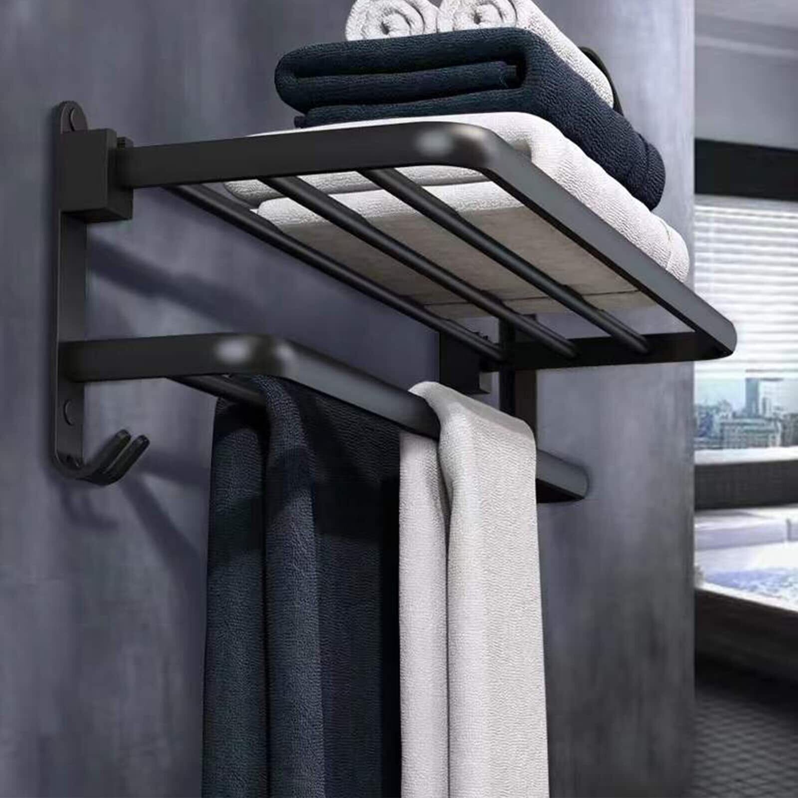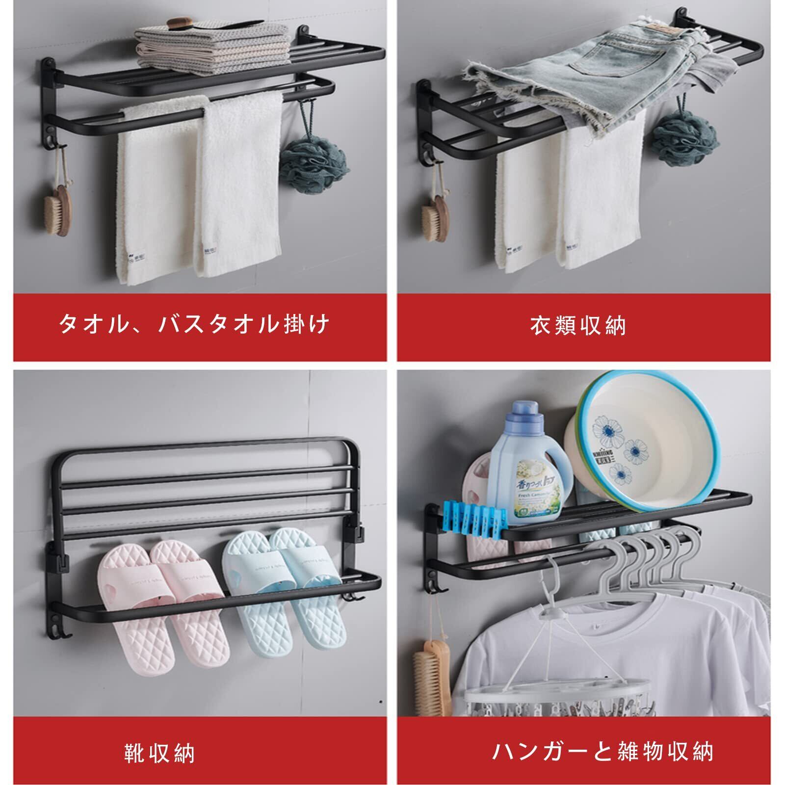 【製品仕様】商品名:タオル掛け / バスタオル ハンガー 本体サイズ: 39*23*18.7cm カラー:ブラック 材質:アルミニウム 設計:2層