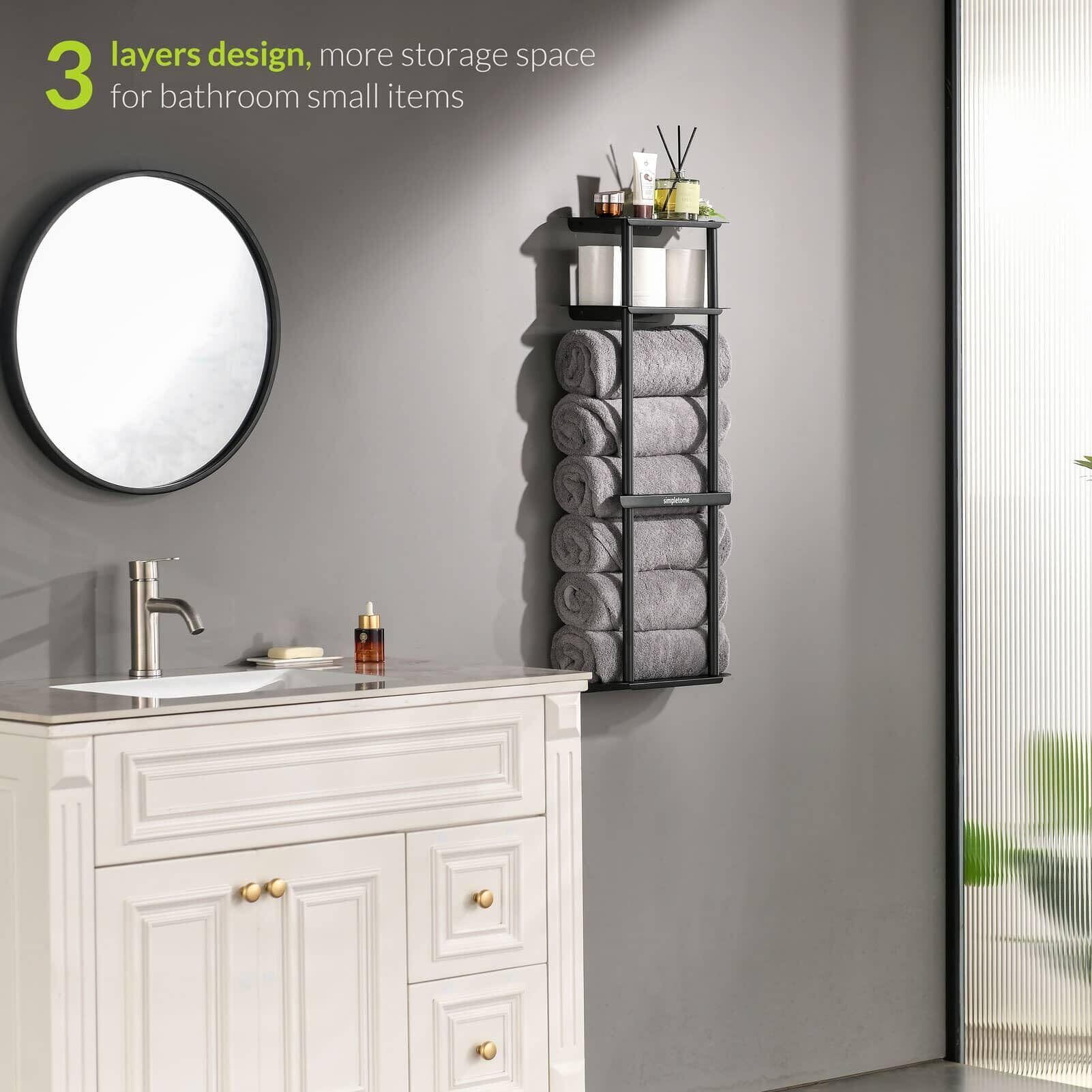 simpletome バスタオル 収納 タオルラック 壁掛け バスルーム シャワーオーガナイザー棚 厚肉炭素鋼 (マットブラック)