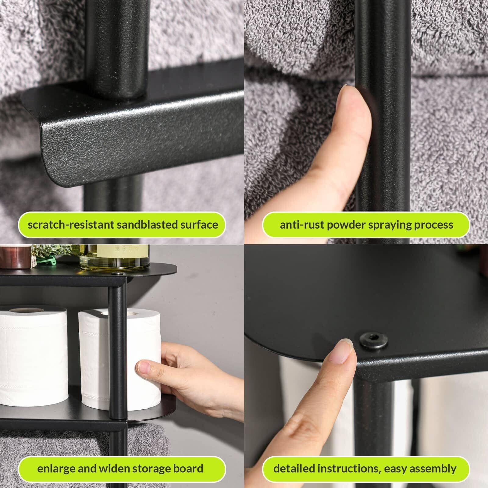 3層収納設計:大容量の3層収納式タオルラック(特大パネル:長さ32cm x 奥行き15cm)は、シャンプー、シャワージェル、くし、フェイスクリーム、トイレットペーパー、アロマセラピー用品など、より多くの小物を収納できます。