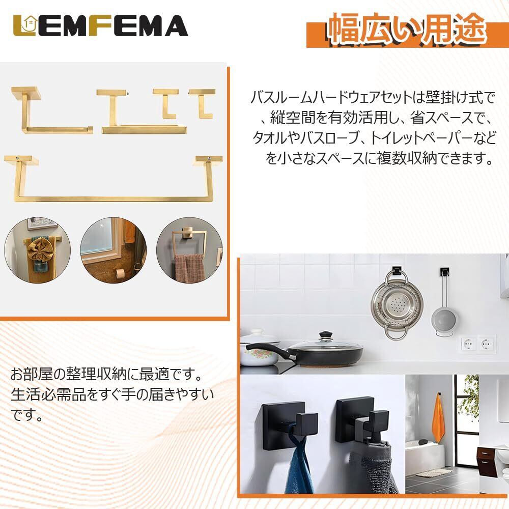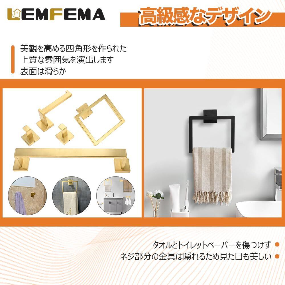 5個セット タオル掛け タオルバー タオルハンガー 40cm Lemfema 省スペース ネジとレンチ付き ステンレス 壁掛けフック タオルホルダー バスルーム 洗面所 トイレ 浴室 キッチン バスルームアクセサリー おしゃれな収納用品 つや消し ゴールド タオルリング