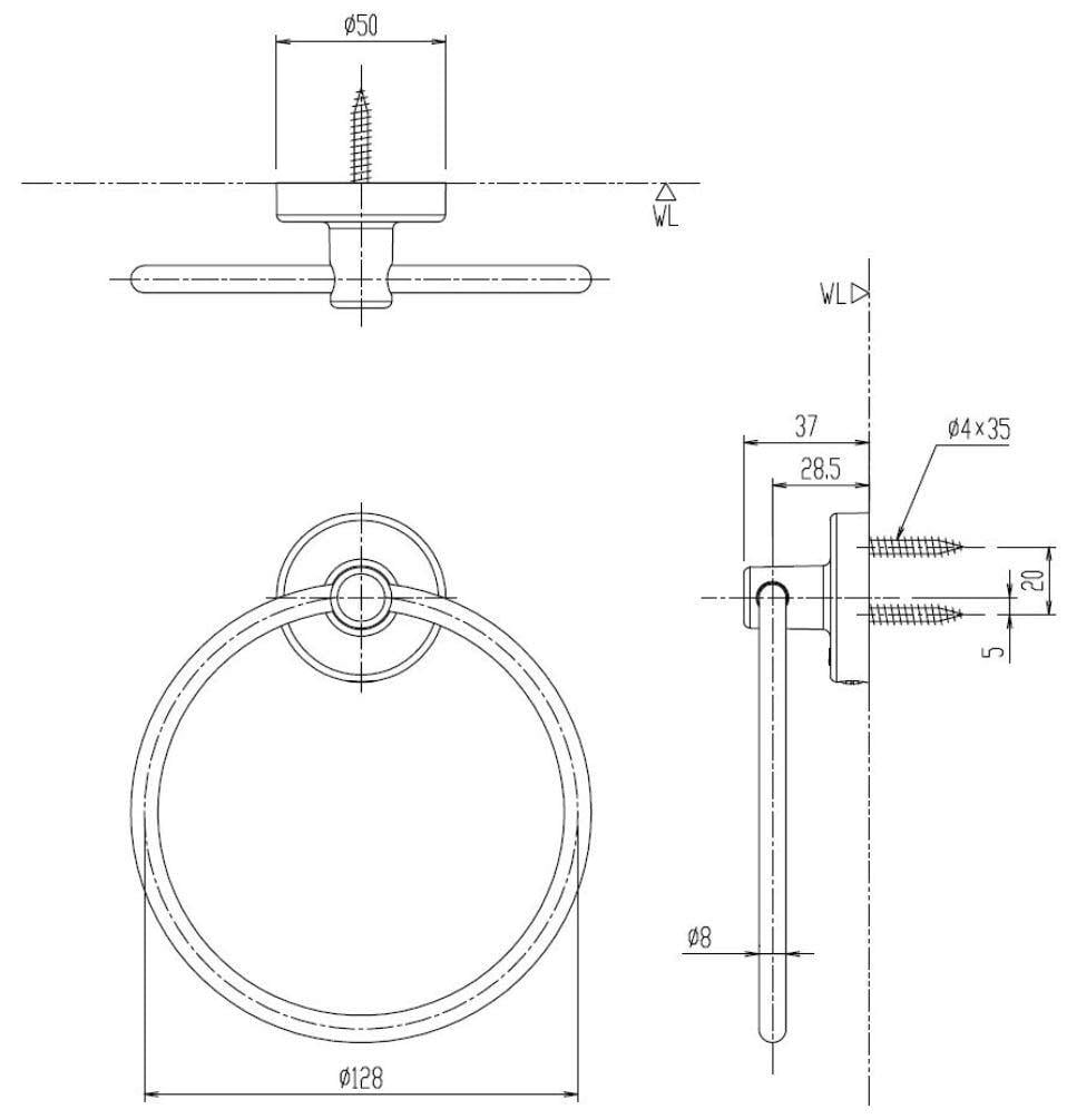 寸法136X(φ8)37X156 材質〈ブラケット部〉ABS樹脂(Ni-Crメッキ) 〈リング〉真ちゅう(Ni-Crメッキ)