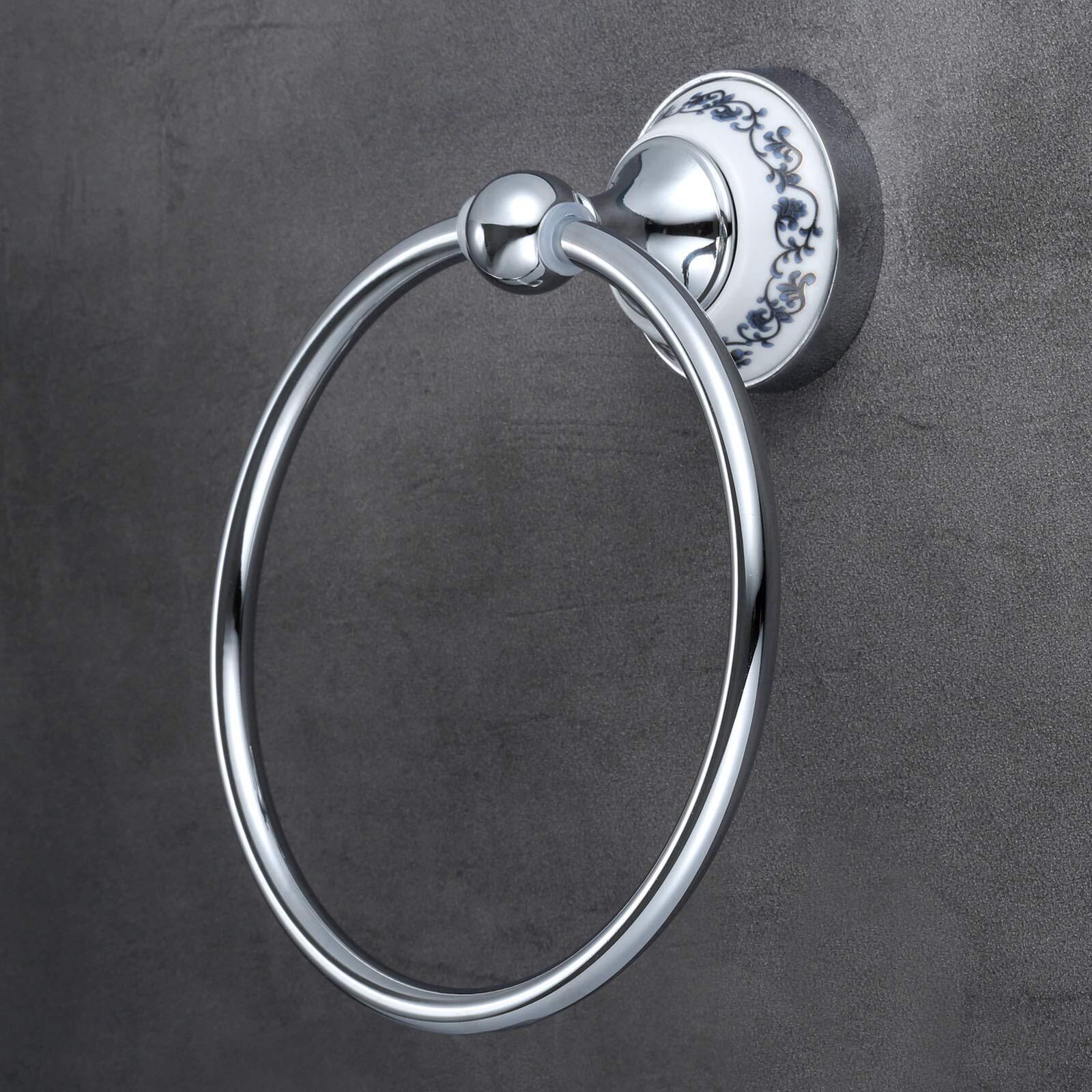 【良いデザイン】このタオルリングは染付の陶磁器の柄というアンティーク調のデザインとを採用し、美しく高級感があります。取り付けると家に素晴らしい雰囲気を加えます。隠されたネジのデザインとモダンな外観は様々なスタイルに適しています。