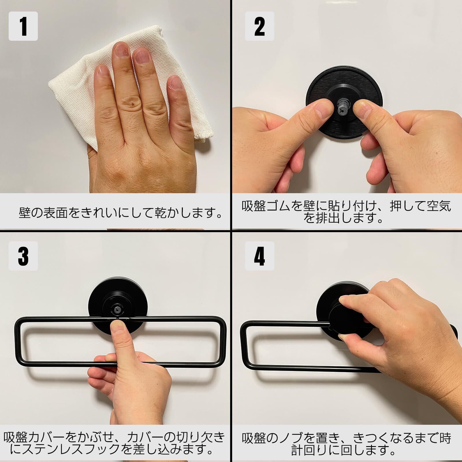 簡単な設置】:壁に穴を掘る必要なしの吸盤式で、平坦な壁面に容易に設置。サクションカップは移動可能で、繰り返し使用できるタオル収納ソリューション。不明点がございましたら、当店にご連絡ください。