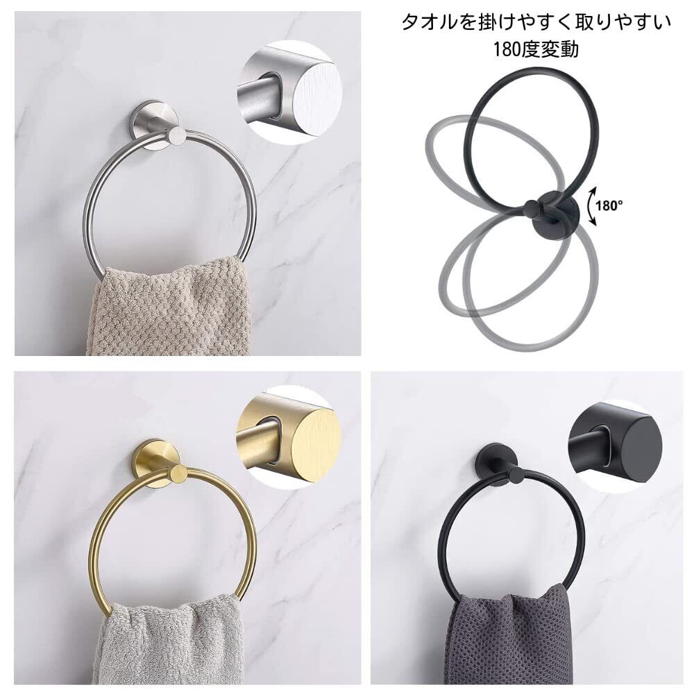 【サイズ、仕様】ブラック色。内径14.5cmでゆったりタオルを掛ける事が出来ます。高品質、防水、防錆の304ステンレス素材。付属のネジでしっかり固定出来ます。付属品:トイレットペーパーホルダー×1、タオルハンガーリング×1、取付用金具×2(六角レンチ、アンカー、ビス)【簡単取り付け】 壁にネジ取り付け用の穴を開け膨張チューブを打ち込みます。 台座をネジで壁に固定し、本体を六角レンチで取り付けて完成!