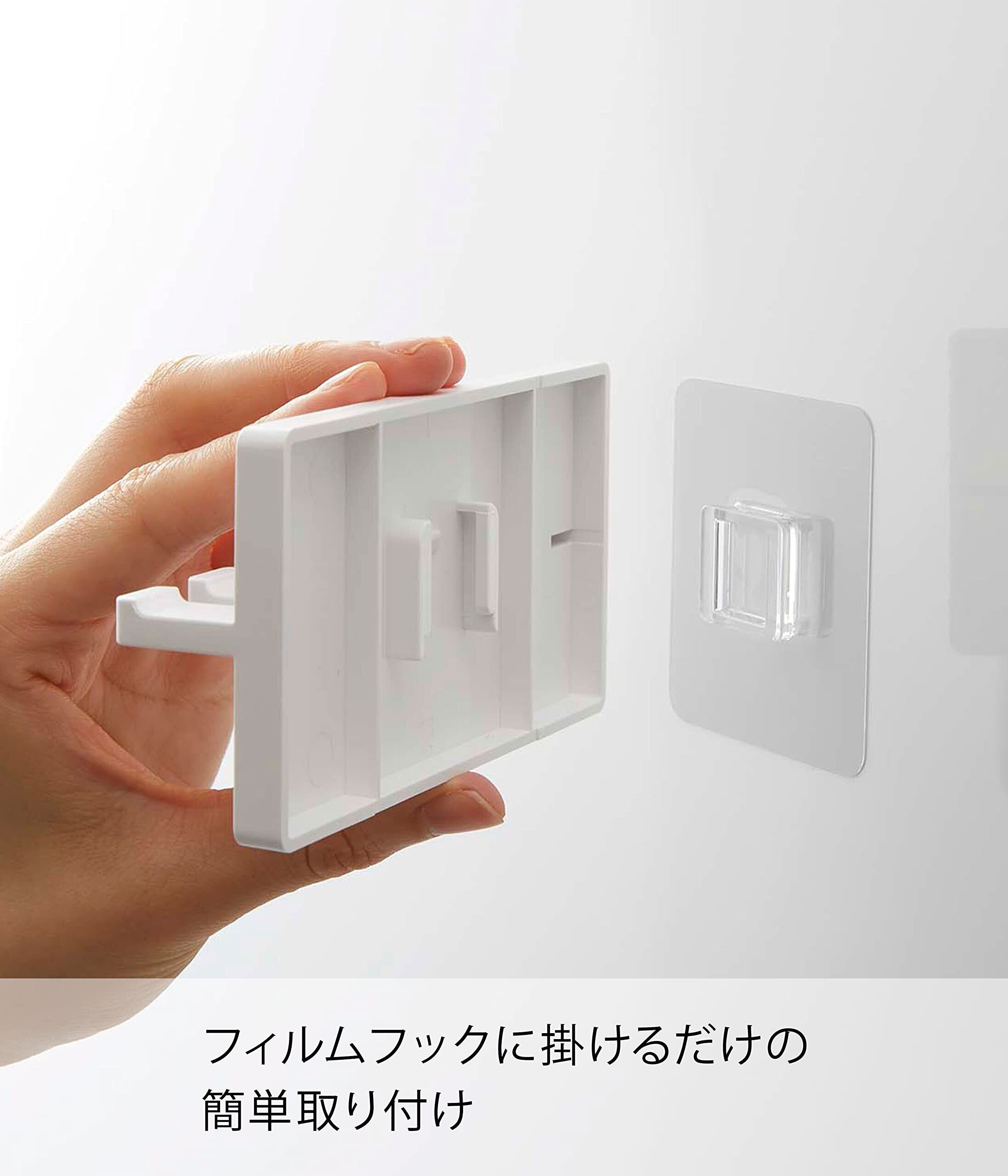 取り付け可能な壁面:光沢のある平らな油染みしない面(フィルムフックの接着面よりも大きい面・タイル・プラスチック面・ステンレス・人工大理石・ガラス・金属塗装面)