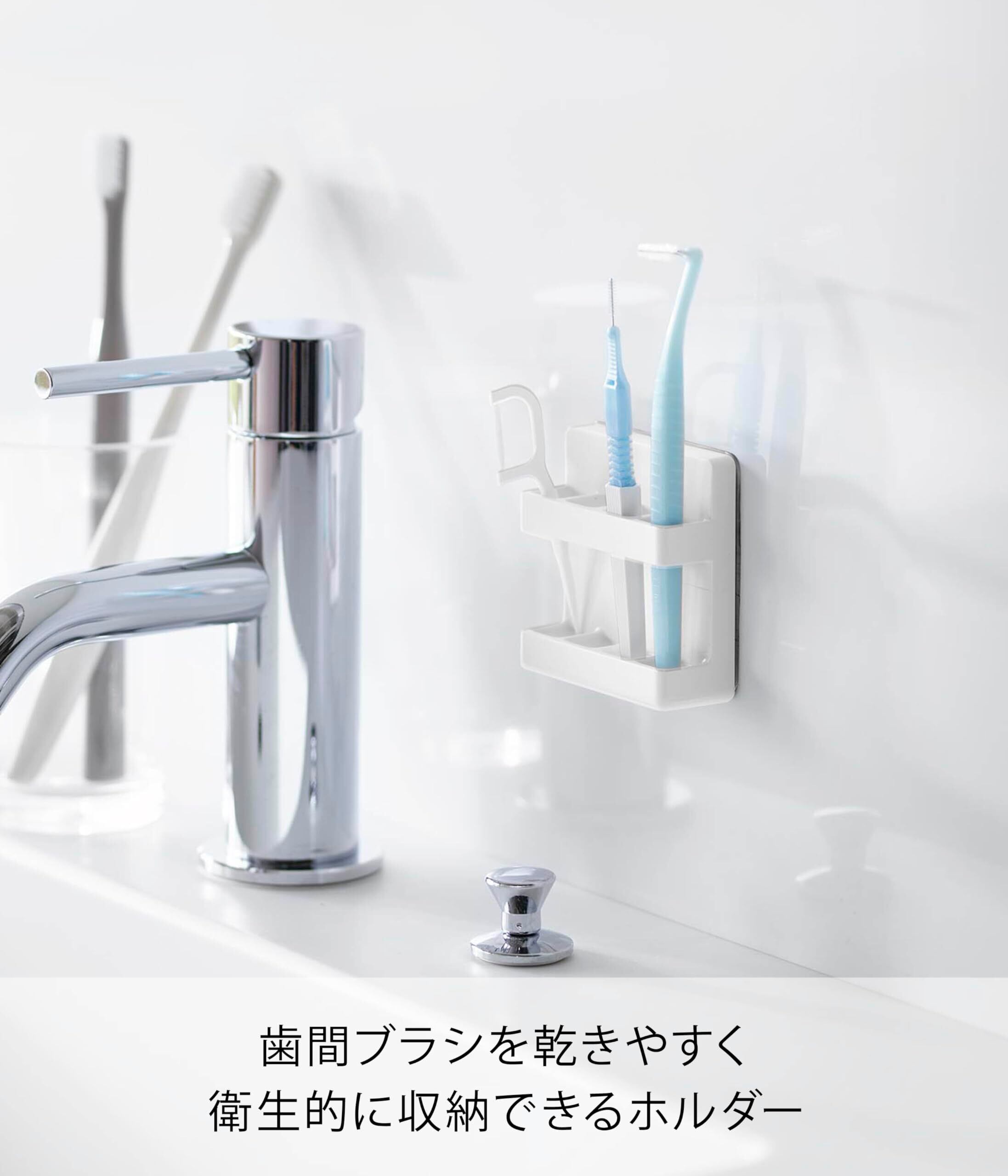 フィルムフックに掛けるだけの簡単取り付け!歯間ブラシを乾きやすく衛生的に収納できるホルダーです。
