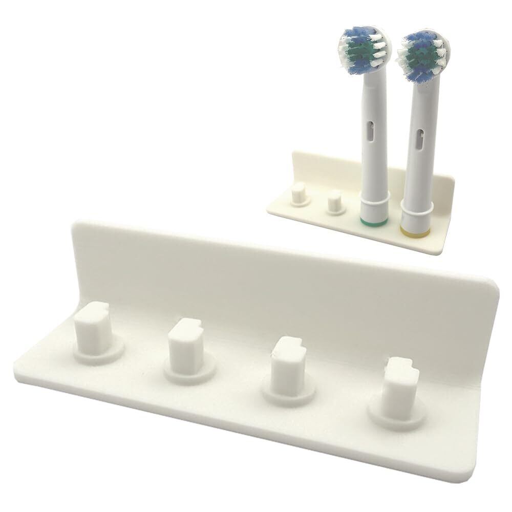 電動歯ブラシの収納にお使いいただける電動歯ブラシスタンドになります。シンプルな形状でインテリアに合わせやすく差し込みタイプでさまざまな形状のブラシを保管できます。歯ブラシを一度に4本収納することができます。歯ブラシを立てて収納するので、乾燥しやすくブラシ部分に汚れも付かず衛生的に保管できます。本体裏面に貼付け用両面テープが付いておりますので、工具も要らずお好みの位置に手軽に取り付けが可能となっております。商品内容:本体1個、サイズ:縦2cm,横7.5cm,幅2.5cm、厚さ2mm、カラー:ホワイト、素材:PLA樹脂、対応機種:ブラウン製Oral-B,Proシリーズ、回転式電動歯ブラシ