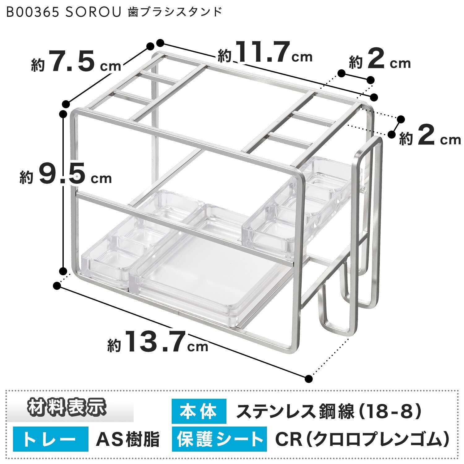 レック(LEC) SORO:U ステンレス 歯ブラシスタンド (抗菌トレー) 電動歯ブラシ用替えブラシ対応