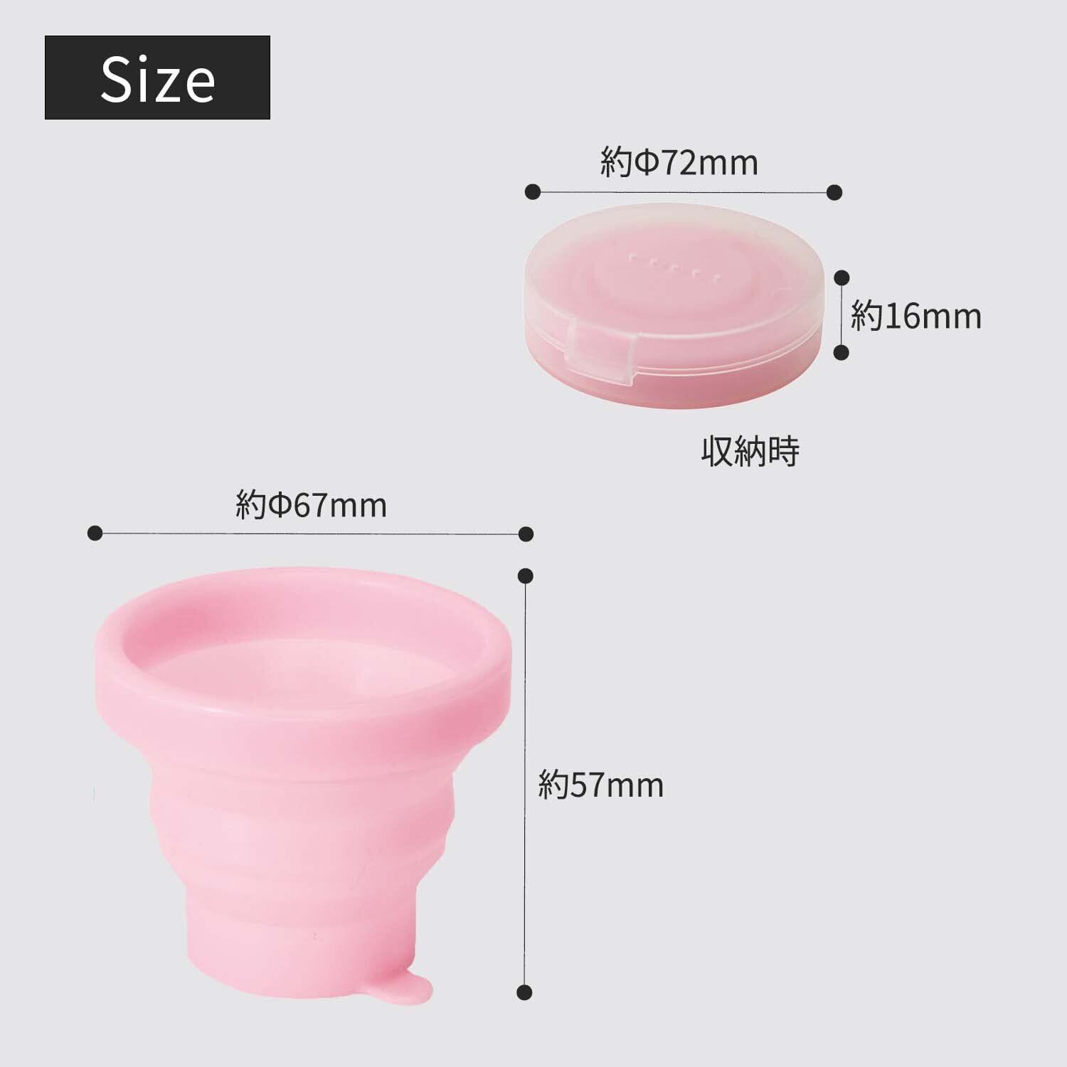 【材質】コップ:シリコーンゴム、ケース:ポリプロピレン【耐熱温度】コップ:200℃、ケース:120℃【容量】約95ml【サイズ】約7.4×7.7×2cm(ケース収納時)【生産国】中国