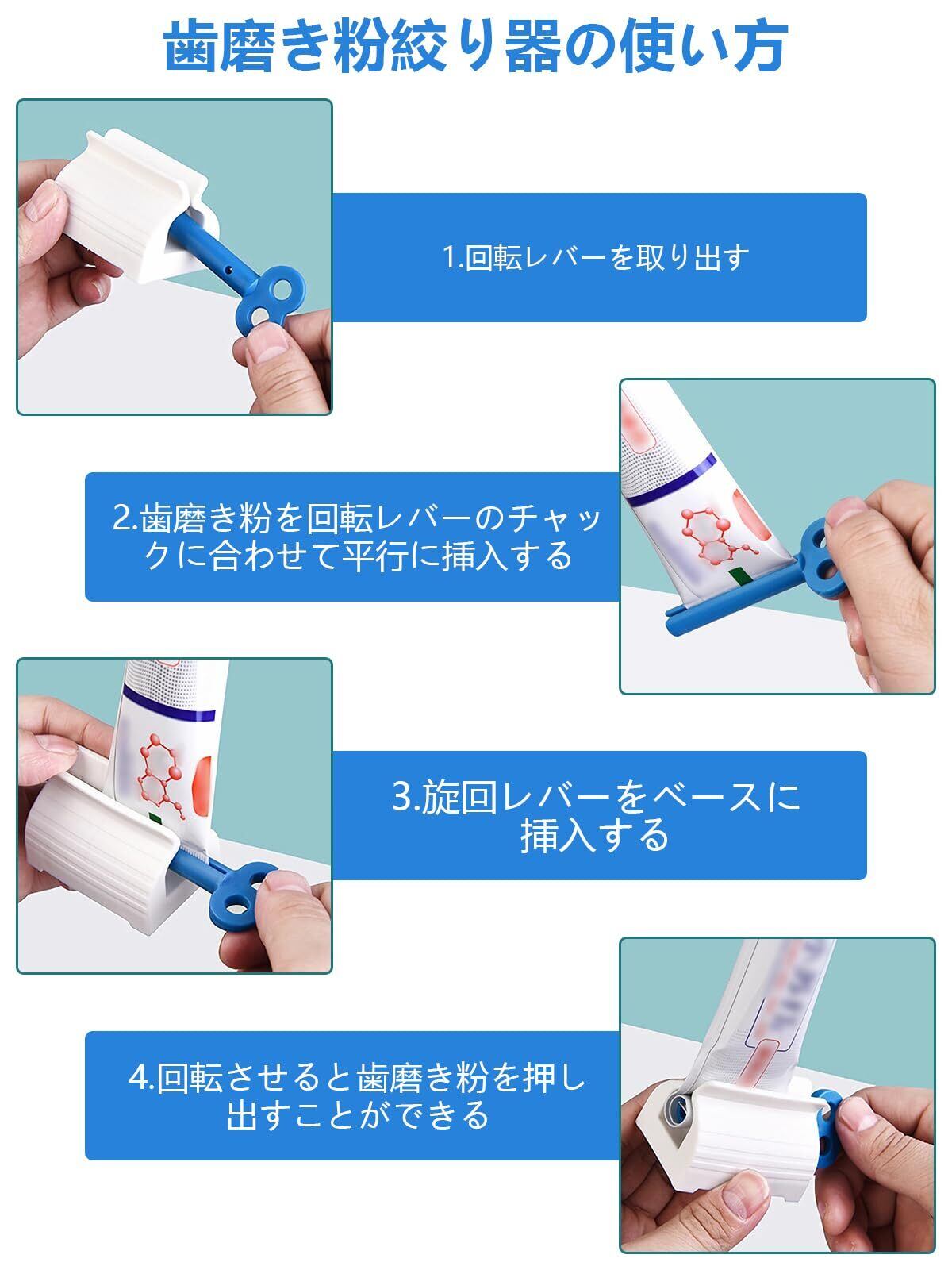 【使い方】:回転ハンドル付きで設計されたこの歯磨き粉スクイーザーは、歯磨き粉をローリングシャフトに挿入し、ハンドルを回すだけで、これ以上の強度は必要なく、回転すると練り歯磨きが出ます。