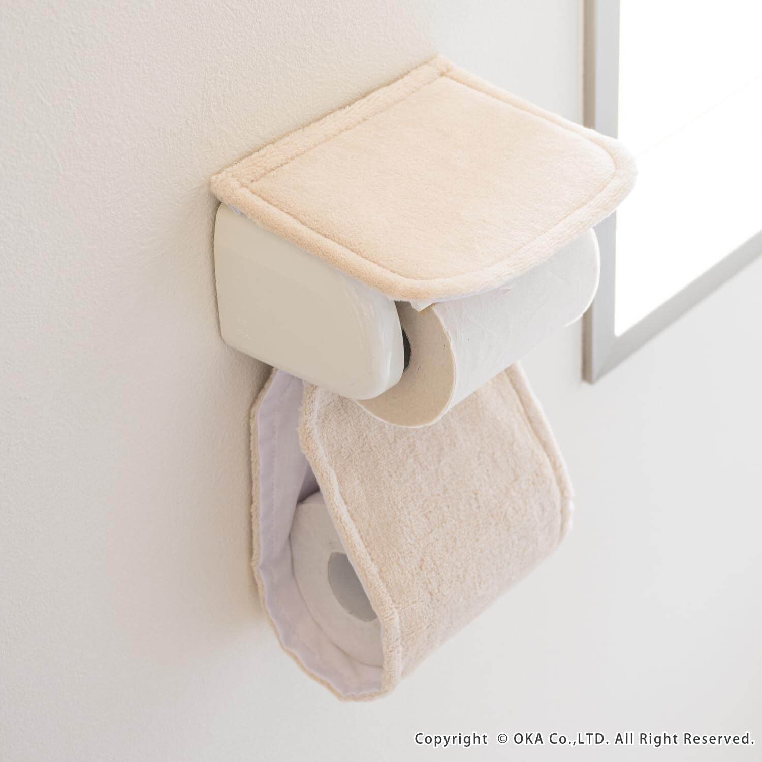 オカ(OKA) コクーン トイレットペーパーホルダーカバー ベージュ (シンプル モダン 無地 洗える トイレ 1連)