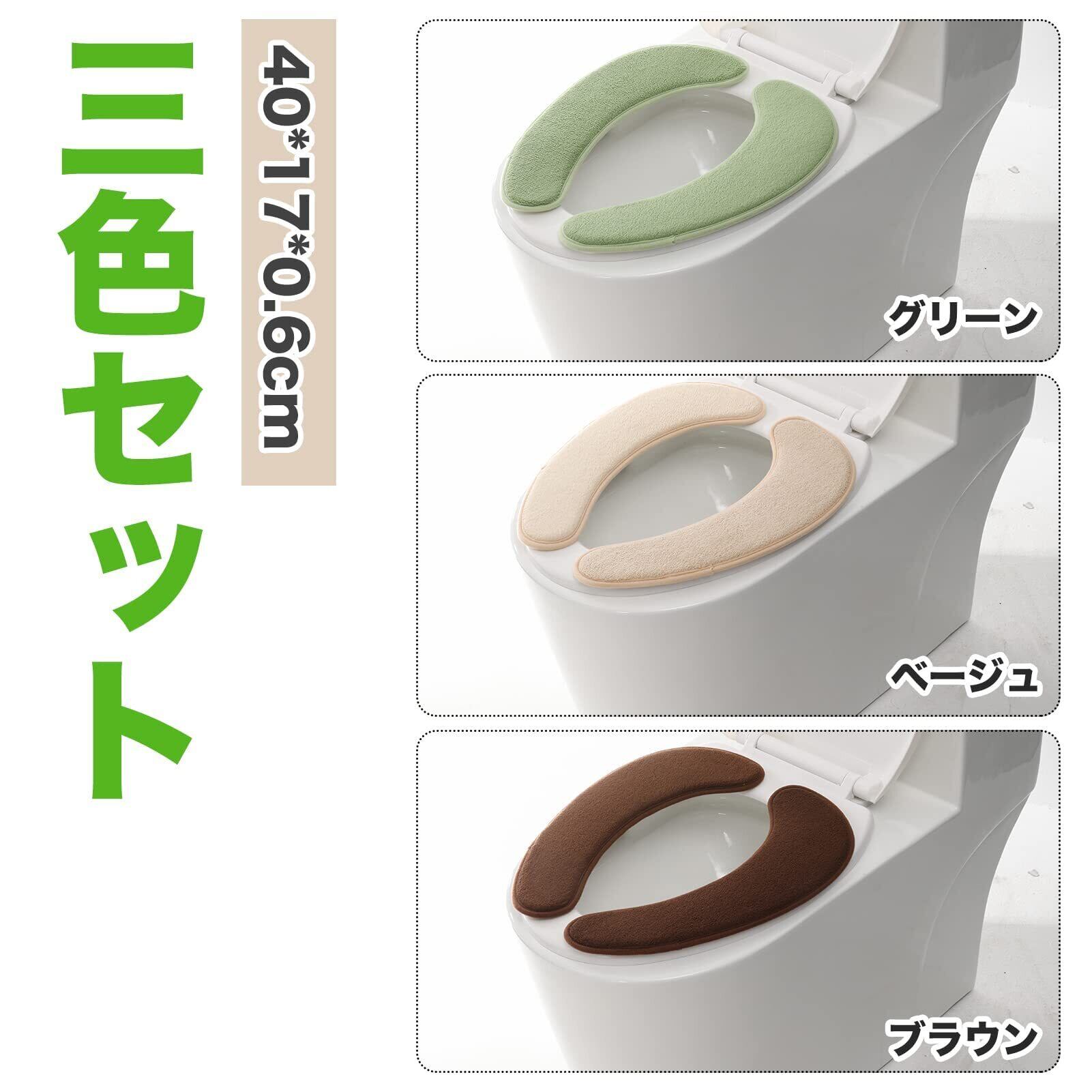 SHIEN 便座シートフランネル 便座カバー 【3セット入り】消臭 洗える ずれない トイレ 便座カバー吸着タイプシート 防寒(U型/O型/洗浄暖房型兼用) ベージュ+ブラウン+グリーンの組み合わせ