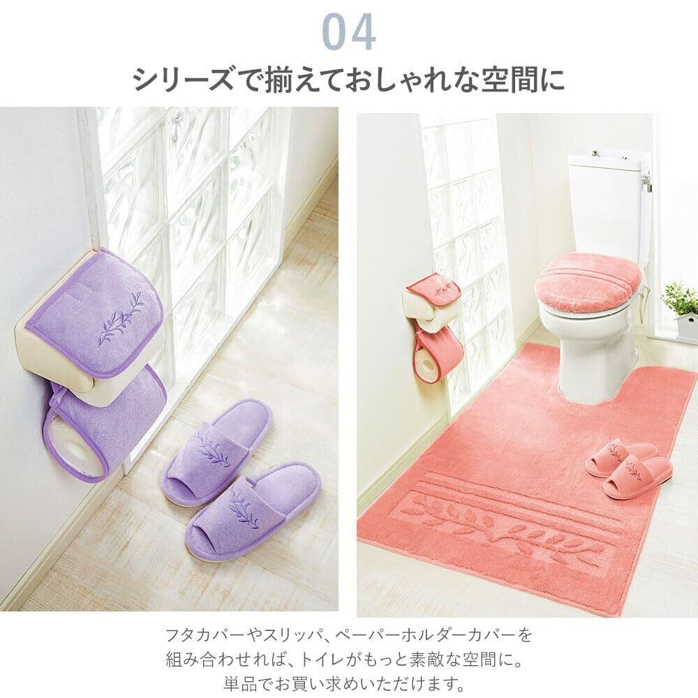 ベルーナ(BELLUNA) トイレマット ロング 洗える おしゃれ トイレカバー スリッパ&ペーパーホルダー フタカバー 耳長 ワイド オリーブ柄 滑り止め 抗菌防臭 ふわふわ へたりにくい 単品 (543931-055)