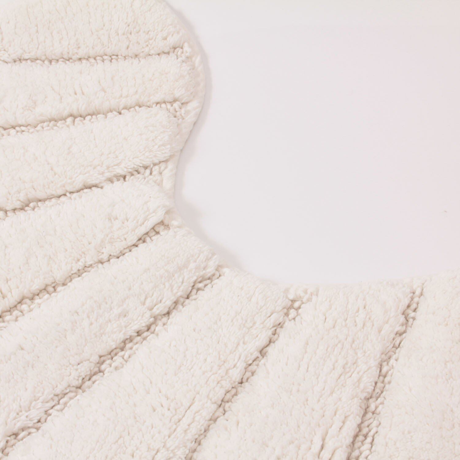 コットン素材のシェル型のトイレマット。綿の出荷量世界2位のインド綿を使用しています。シェル型のトイレマットは、トイレを上品に演出します。綿素材なので吸水性もよく、汚れても気軽に洗えます。マットには滑り止め加工付きで、滑らず安心です。