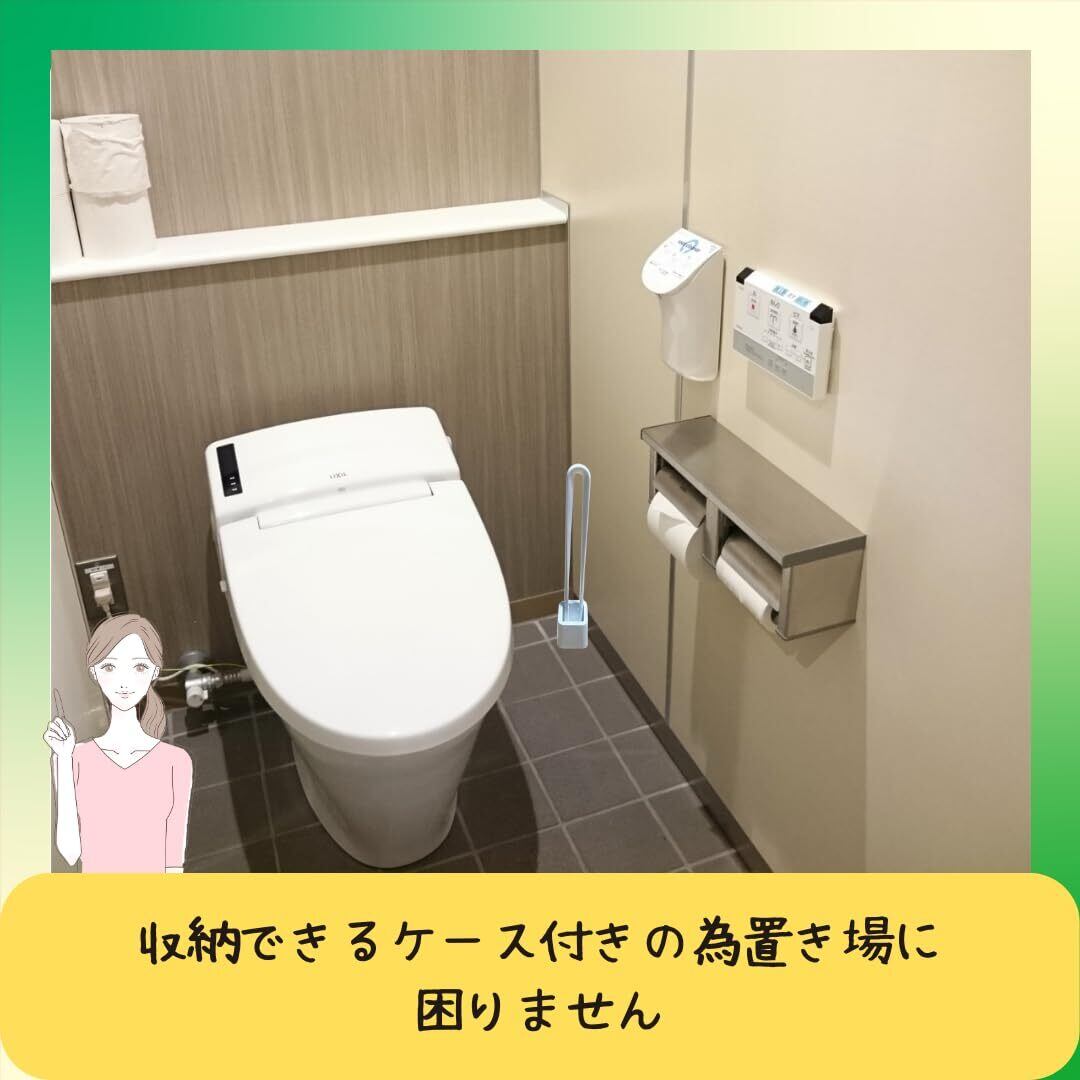 【0116】挟んで拭けるトイレットペーパーやトイレクリーナー 先端がL字形状でフチ裏に届きやすい 収納 専用スタンド付き