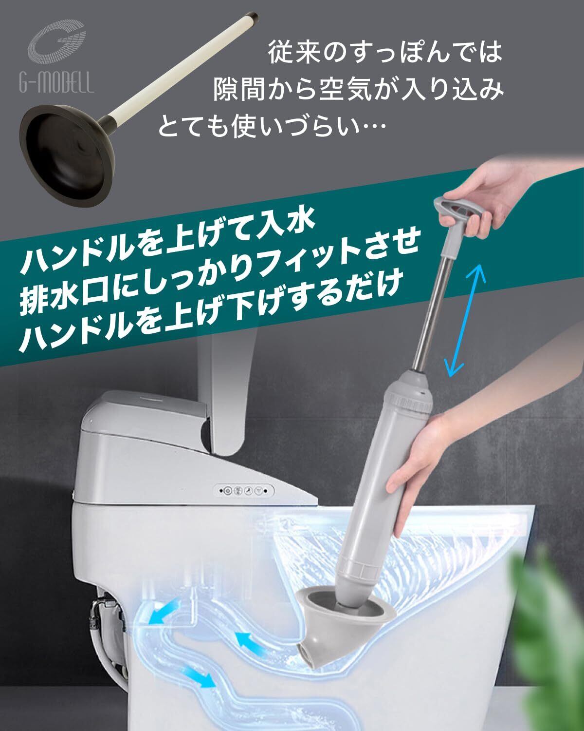 【使い方は簡単】空気が逃げないように便器にフィットさせた後にレバーを上下するだけです。パイプクリーナーや真空ポンプとしても。