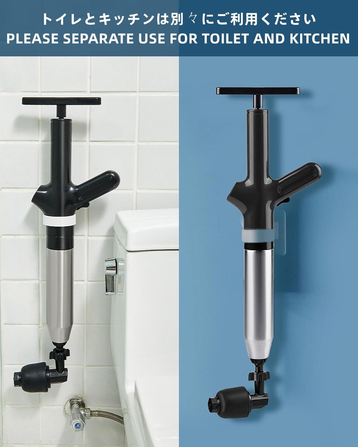 トイレプランジャー エアドレインブラスター トイレつまり解消道具 最強 高圧トイレプランジャー 重厚なバスルーム用プランジャー 詰まったトイレ用ステンレス製エアードレインプランジャー バスルーム、床排水口、シンク、キッチン対応 (強化版-黒)